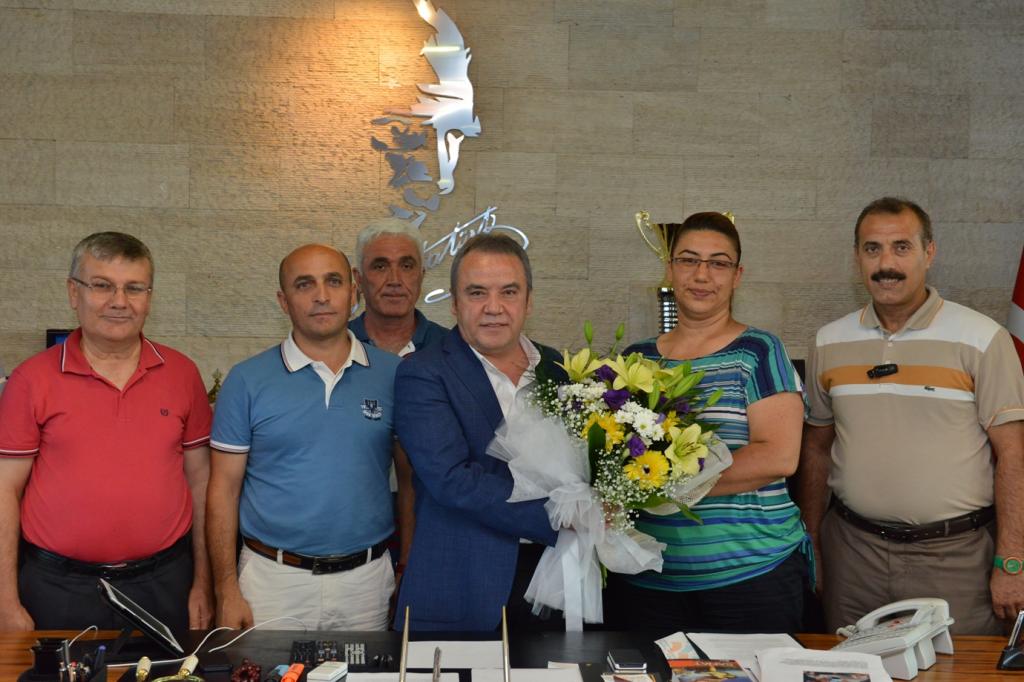22 Haziran Pazar günü yapılan Belediye-İş Sendikası Antalya Şubesi 10. Olağan Genel Kurulu Toplantısı’nda başkanlık görevine seçilen Kemal Çavuşoğlu, yeni yönetimiyle birlikte Konyaaltı Belediye Başkanı Muhittin Böcek’i makamında ziyaret etti.