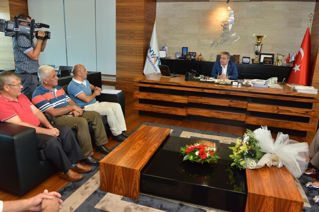 Türkiye Belediyeler ve Genel Hizmetler İşçileri Sendikası (Belediye-İş) Şube Başkanı Kemal Çavuşoğlu, Konyaaltı Belediyesi’nde çalışanların her zaman barış ve huzur içinde olduklarını belirterek, Başkan Böcek’in işçilerin alın terini yere düşürmeden, emeklerinin karşılığını ödediğini söyledi. Kemal Çavuşoğlu Başkan Böcek’e çiçek takdim ederek teşekkür etti.