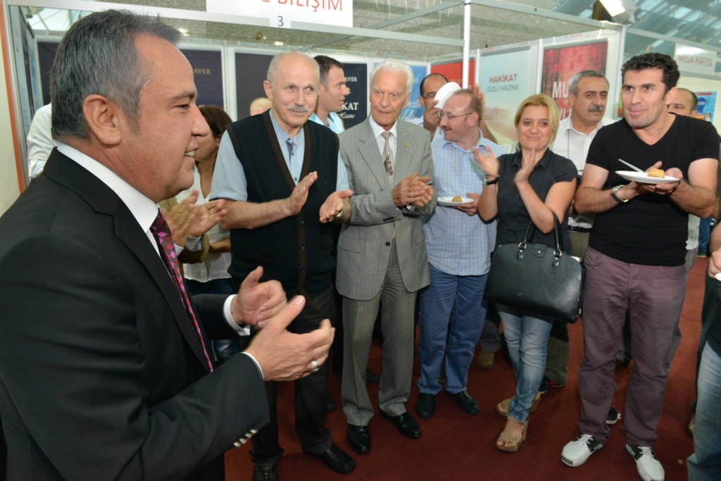 77 standın ve 70 yazarın katıldığı, on binlerce vatandaşın ziyaret ettiği fuar, Konyaaltı Belediye Başkanı Muhittin Böcek’in yayınevi temsilcilerine tatlı ikramıyla son buldu.