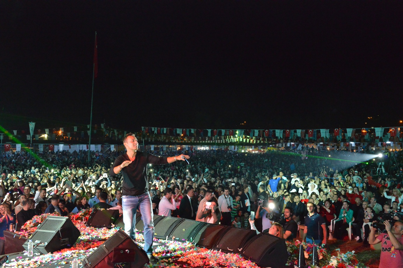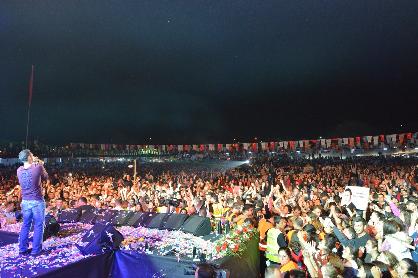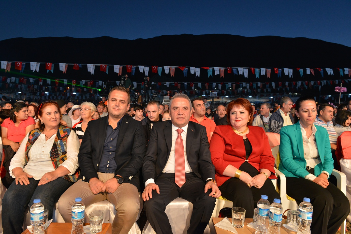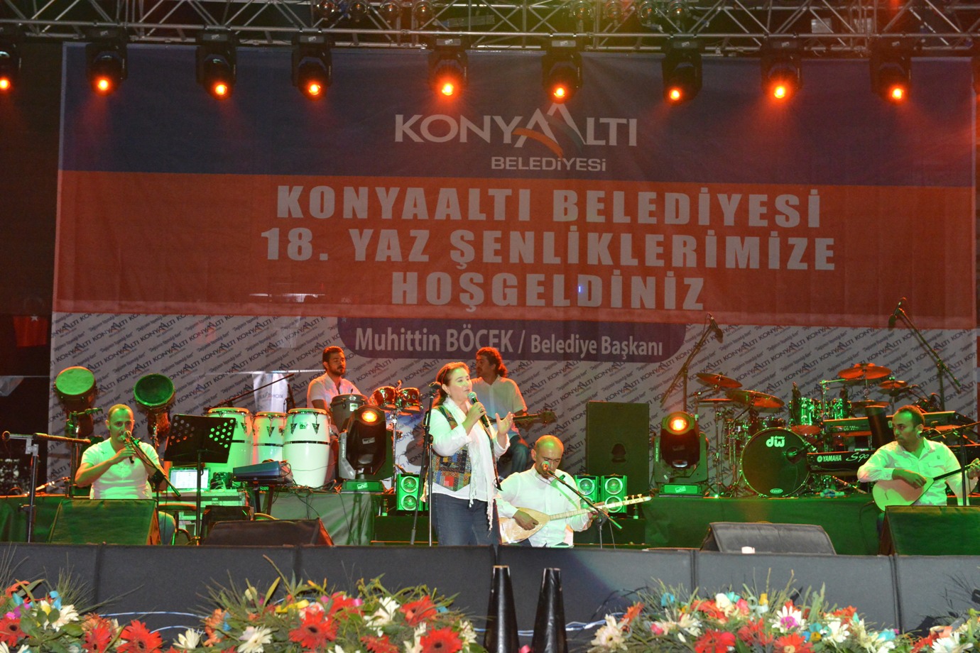 Feslikan Yaylası’nda gerçekleştirilen Yaz Şenlikleri’nin ilk gününde, Türk Halk Müziğinin usta yorumcuları Oğuz Aksaç, Sabahat Akkiraz Türk Pop Müziği’nin sevilen sanatçısı Mustafa Sandal sahne aldı. CHP İl Başkanı Devrim Kök, sivil toplum kuruluşları, siyasi parti temsilcileri, meclis üyeleri, muhtarlar ve binlerce vatandaşın katıldığı Yaz Şenliklerinin açılış konuşmasını yapan Konyaaltı Belediye Başkanı Muhittin Böcek, yaylaların yaylası Feslikan’da vatandaşlarla bir arada olmaktan mutluluk duyduğunu ifade etti. Değişimin yaşandığı Konyaaltı’nda 15 yıllık süreçte önemli mesafeler kaydedildiğini ifade eden Başkan Böcek, “Dört köyden oluşan küçük bir belde olan Konyaaltı bugün 150 binlik nüfusa sahip bir ilçe haline geldi. Bugüne kadar tüm çalışmalarımızı vatandaşlarımızın istek ve beklentilerini gözeterek azim ve kararlılıkla gerçekleştirdik. Bize güvenen destek veren tüm vatandaşlarımıza teşekkür ederim” dedi. Konuşmaların ardından Türk Halk Müziğinin sevilen ismi Oğuz Aksaç birbirinden hareketli şarkılarla Antalyalıları coştururken, CHP İstanbul Milletvekili sanatçı Sebahat Akkiraz’da hayranlarına türkü ziyafeti yaşattı. 1998 yılında Şırnak’ın Seslice Bölgesi’nde şehit olan Hamza Uzguç’ün annesi Ayşe Uzguç, Konyaaltı Belediye Başkanı Muhittin Böcek ile birlikte oğluna çok benzeyen Mustafa Sandalı konser öncesi kuliste ziyaret etti. Duygu dolu anların yaşandığı kuliste Ayşe Uzguç şehit oğlunun resmini Mustafa Sandal’a hediye etti. Daha sonra ışık gösterileriyle sahneye çıkan Mustafa Sandal, hayranların gösterdiği ilgi karşısında büyük mutluluk duyduğunu söyledi. Her sene Feslikan’a gelmek istediğini vurgulayan Sandal, vatandaşlarla buluşmasına imkan sağlayan Konyaaltı Belediye Başkanı Muhittin Böcek’e teşekkür etti. Gece havai fişek gösterileriyle sona erdi.