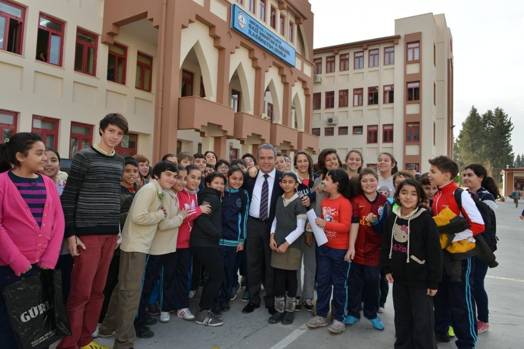 Gazi Mustafa Kemal İlköğretim Okulu’nun yönetimi ve öğrencileri tarafından oldukça sıcak karşılanan Başkan Muhittin Böcek, görev süresince okullarda öğrenci ve öğretmenleri ziyaret etmeyle büyük önem gösterdiğini söyledi. Bu ziyaretleri sırasında kendisine okullardan bir takım talepler geldiğini ve bunların büyük bir bölümünü karşıladıklarını da dile getiren Başkan Böcek, ülkemizi yarınlara taşıyacak olan gençlere her türlü desteği vermeye hazır olduklarını bildirdi.