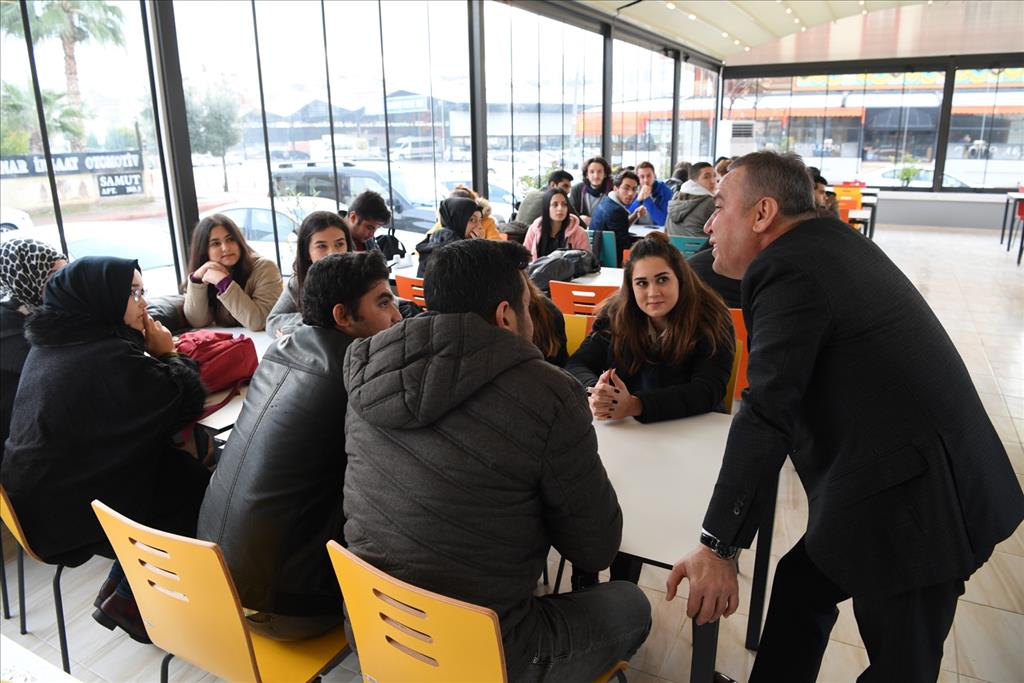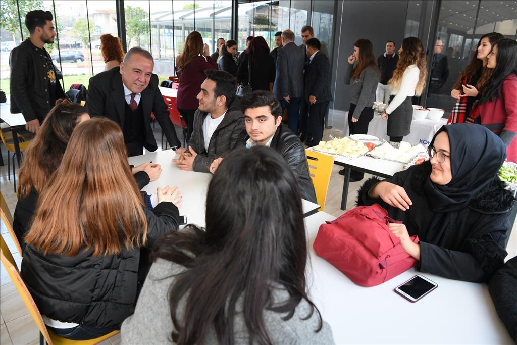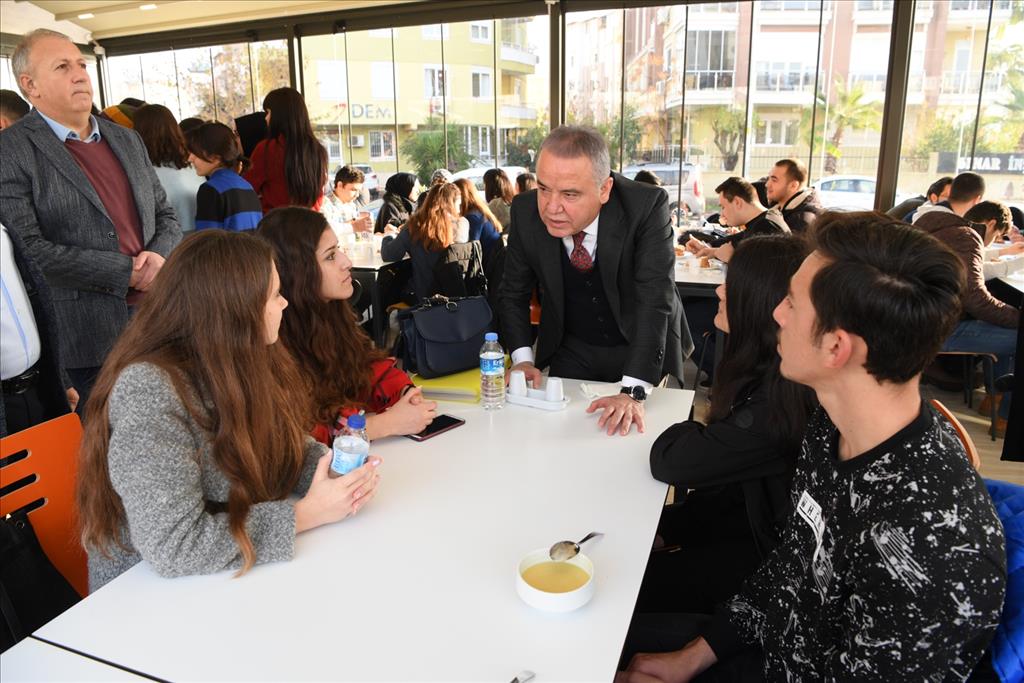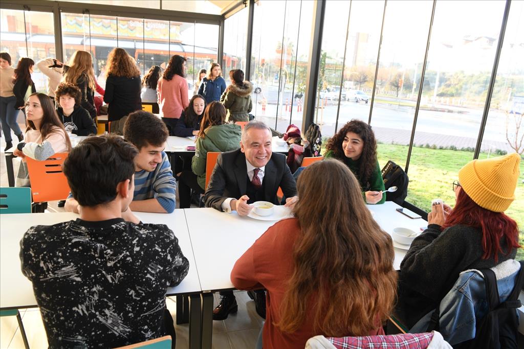 Konyaaltı Belediyesi Gençlik Lokali’nin ilk günü öğrencilerin büyük ilgi gösterdiğini ifade eden Başkan Muhittin Böcek, kapı da karşıladığı öğrencilere kendi eliyle çorba ikram etti.
