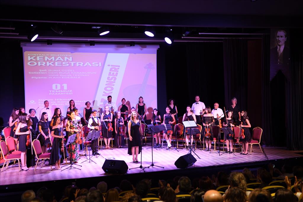Konyaaltı Belediyesi Nazım Hikmet Fuar ve Kongre Merkezi’nde gerçekleştirilen Keman Orkestrası ‘Yaz Konseri’ni Konyaaltı Belediyesi Başkan Yardımcısı Tuğba Erke Bostan ve çok sayıda sanatsever izledi. Buket Güzel şefliğinde gerçekleştirilen konserde izleyenler keyifli dakikalar yaşadı. 13 eserin seslendirildiği konserde İrem Bulut Karaburun ve Ümit Burak Tekinay solo şarkılarla konsere renk kattı. 10. Yıl Marşı ve İzmir Marşı Konser sona eren konser izleyenlerden büyük beğeni topladı.