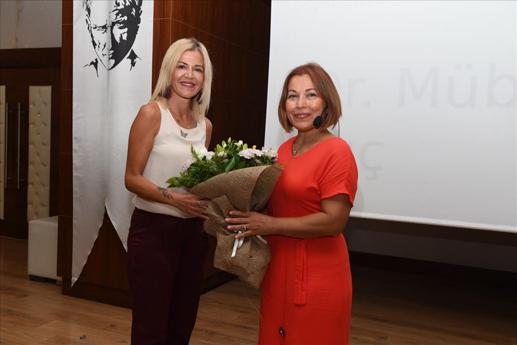 Konyaaltı Belediyesi Kent Gönüllüsü Projesi ile farklı konu ve alanda uzman isimleri vatandaşlarla buluşturmaya devam edeceklerini belirten Konyaaltı Belediyesi Başkan Yardımcısı Bostan, Dr. Müberra Kılıç’a teşekkür ederek çiçeğini takdim etti.