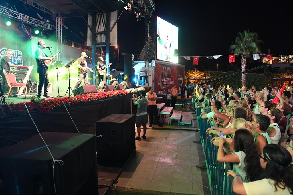 Konserin bir bölümünde Antalyalılara seslenen Konyaaltı Belediyesi Başkan vekili Tuğba Erke Bostan, “30 Ağustos, uzun süren savaş günlerinin bitişi değildir sadece, Başkumandan Mustafa Kemal Atatürk önderliğinde genç Türkiye Cumhuriyeti’nin aydınlık günlere yürüyüşünün başladığı gündür.” dedi.