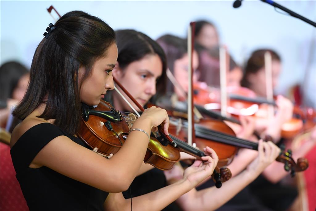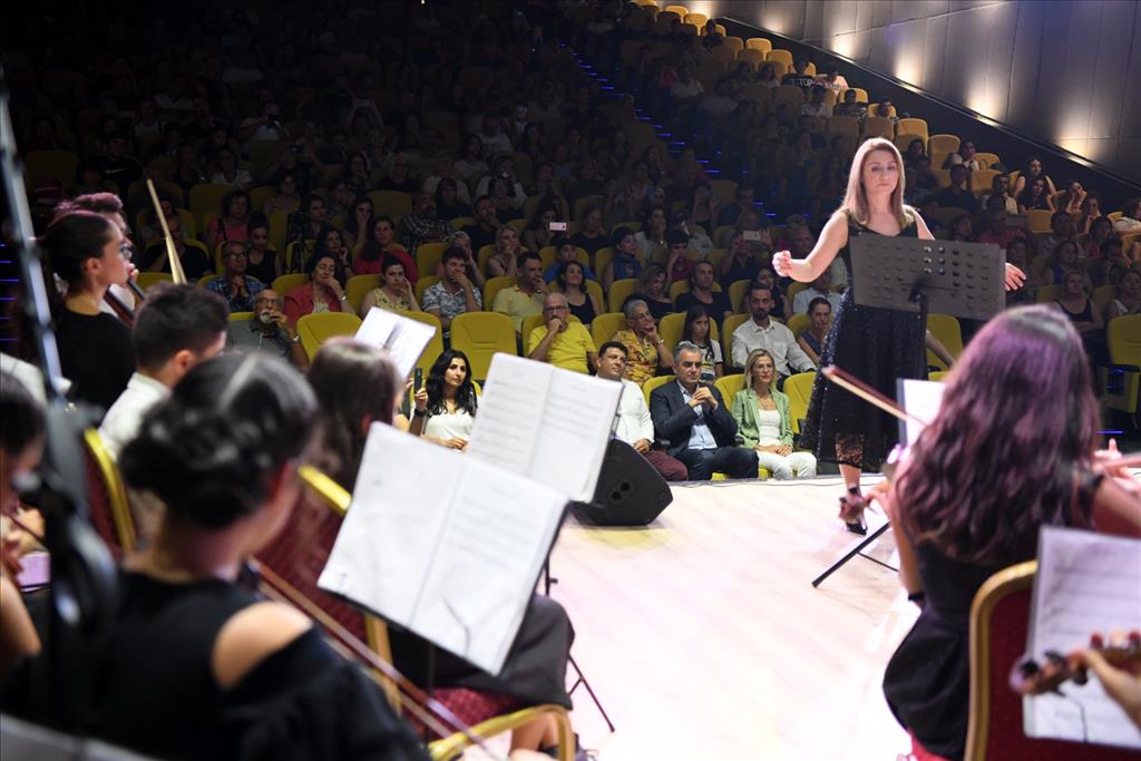 Buket Güzel ve solistlere çiçek takdim ederek ayrı ayrı teşekkür eden Konyaaltı Belediye Başkanı Semih Esen, şöyle konuştu; “Çocuklarımızın anne-babaları aramızda, eminim onlar çok duygusallar. Çocuklarının böyle güzel bir şey ortaya koymuş olmalarını görmenin hem onurunu, hem de duygusallığını yaşıyorlar. Sanatı sadece sevip, destek vermek değil, birçok şeyin ön şartı olduğu için, muhakkak ayakta tutmamız gerektiğine, sanata mecbur olduğumuza inanan biriyim. İnsanlık onurunun korunması hak ve özgürlüklerin korunması için en büyük şart belki de birinci şart çağdaşlık. En çok umutlandıran şeydir bizi bir Anadolu toprağında birisinin çağdaşlaşma adına küçük bir ışık yakması. Bazen bir öğretmenin ‘Ben bu çocuklarımızı eğiteceğim’ diye okulun duvarını boyaması ile gerçekleşir bu, bazen bir emekli öğretmenin ‘Benim maaşımdan şu kadar artıyor bu iki kız çocuğunu okutacağım’ demesiyle gerçekleşir, bazen de çocuklarımızın ülkemizde çağdaşlık adına sanatı yaşatmak istiyoruz demesiyle gerçekleşir. Siz çocuklar, bir gün bu çocuğu küçük ellerinizle büyüteceksiniz ve eminim ki hepiniz meslek hayatlarında başarılı, aile hayatlarında başarı birer birey olacaksınız ve bir gün buraya bu konseri izlemeye geleceksiniz. Belki de çocuklarınızla… Ve onlara şunu diyeceksiniz, ‘Biz bunun kurulduğu gün oradaydık.’ İnşallah bende o gün, benden daha heyecanlı birine görevi devretmiş biri olarak o konseri seyredeceğim. Aldığımız işi anlımızın akıyla yapmanın dışında bir gayemiz yok. Yolunuz açık olsun, yolumuz açık olsun.”
