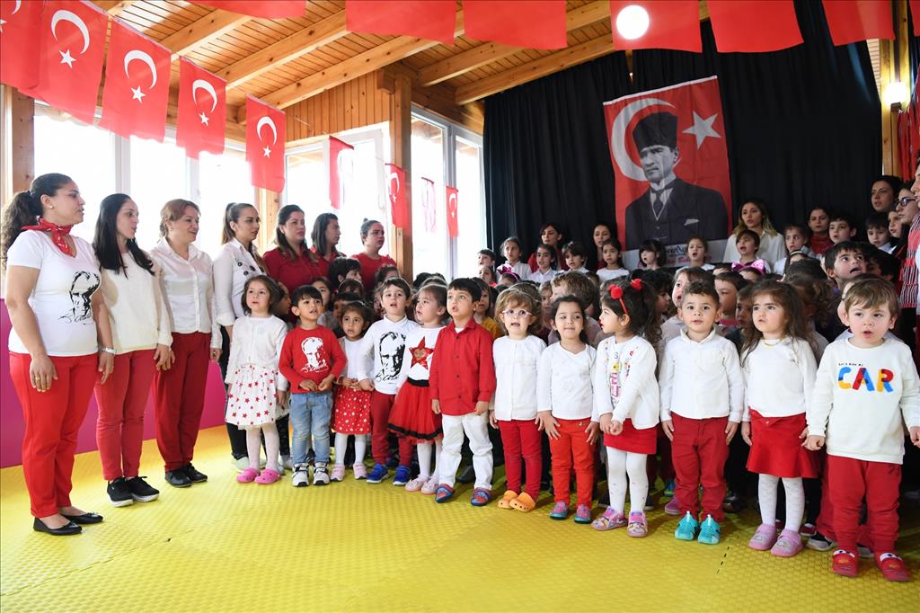12 Mart İstiklal Marşı’nın Kabulü ve Mehmet Akif Ersoy’u Anma Günü dolayısıyla düzenlenen programda, Konyaaltı Belediyesi Uncalı Çocuk Kreşinin minik öğrencileri İstiklal Marşı’nı okudu. Minik öğrencilerin İstiklal Marşı’nı eksiksiz ve coşkuyla okumaları, gurur tablosu oluşturdu. Bayrağımızın renklerini taşıyan kırmızı beyaz kıyafetleriyle oluşturdukları koro ile öğrenciler, öğretmenlerinden de tam not aldı.