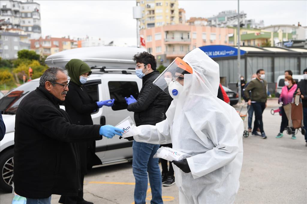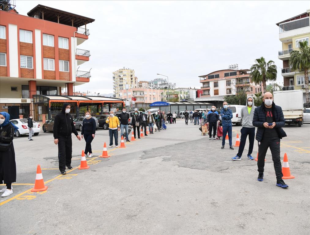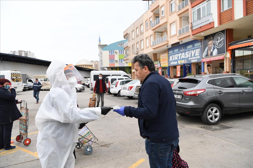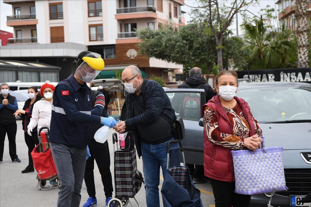 Konyaaltı Belediyesi, koronavirüs salgını önlemleri kapsamında semt pazarlarına gelen vatandaşların sosyal mesafe kuralına göre 10 dakika aralıklarla pazar alanına girişi sağlıyor. Belediye ekipleri,pazar yerlerinde maskesi olmayan vatandaşlara ücretsiz maske dağıtıyor.