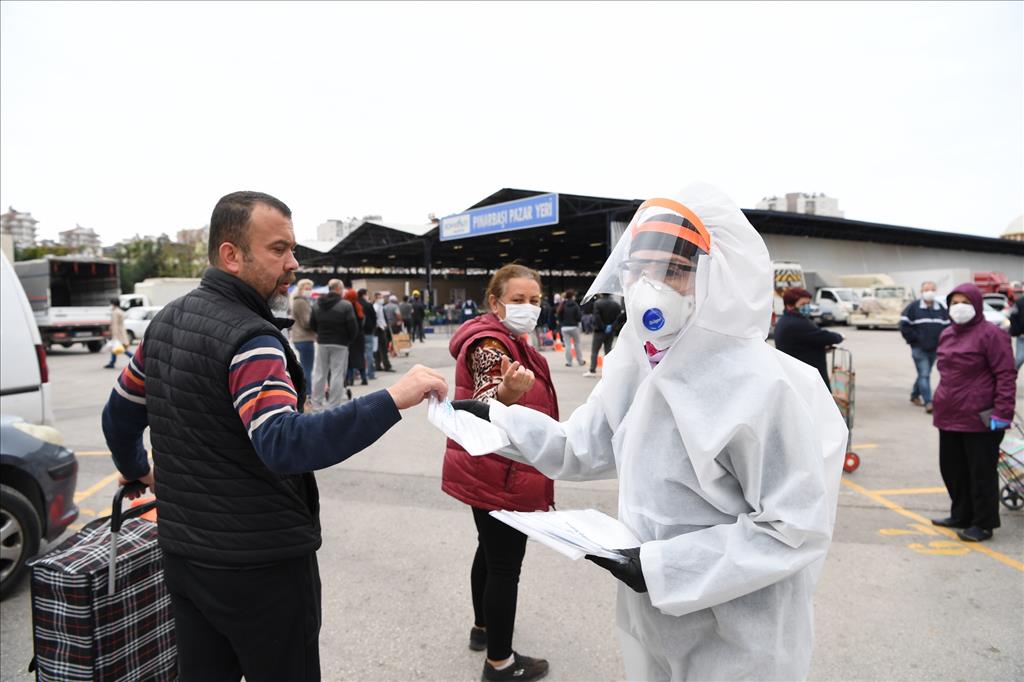 Zabıta ekipleri sık sık pazar esnafını eldivensiz ve maskesiz çalışmamaları konusunda uyarıyor. Ekipler, kurallara uymayan esnafa cezai işlem uyguluyor. Pazar içerisinde ise vatandaşlar yan yana gelmemeleri noktasında uyarılırken, alışveriş sırasında sosyal mesafe kurallarına uymaları isteniyor.
