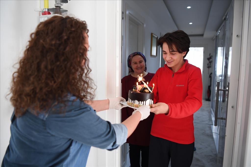 20 yaş altına uygulanan yasak nedeniyle uzun bir süredir evden dışarı çıkamadığını dile getiren Tarık Demiralp, “Bu gün 17. yaşıma giriyorum. Malum yasaklar nedeniyle bu yaş günüme arkadaşlarımı çağıramadım. Tüm gün modum çok düşüktü. Ta ki Konyaaltı Belediyesi’nin bana yaptığı bu yaş günü sürprizine kadar. Hiç beklemiyordum. İnanın çok mutlu oldum” dedi.