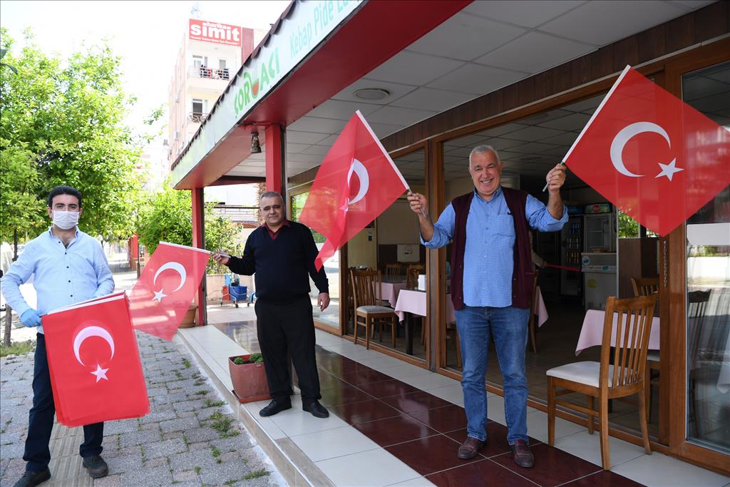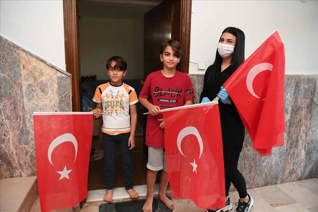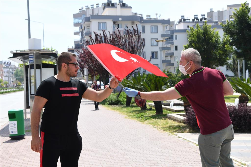 Türkiye Büyük Millet Meclisi’nin (TBMM) kuruluşunun 100’üncü yılı ve 23 Nisan Ulusal Egemenlik ve Çocuk Bayramı, koronavirüs salgını nedeniyle bu yıl sokaklarda vatandaşlarla birlikte kutlanamayacak. Konyaaltı Belediye Başkanı Semih Esen, Konyaaltılı vatandaşlara balkonların süslenmesi ve Türk bayraklarıyla donatılması çağrısı yaptı. Bu kapsamda Konyaaltı Belediyesi Kültür ve Sosyal İşler Müdürlüğü ekipleri, 35 bin Türk Bayrağı dağıtımı yapmak için sokaklara çıktı. Sitelere, cadde ve sokaklarda vatandaşlara Türk bayrağı dağıtıldı. Vatandaşlar, Başkan Semih Esen’e bayrak dağıtımı için teşekkür etti.