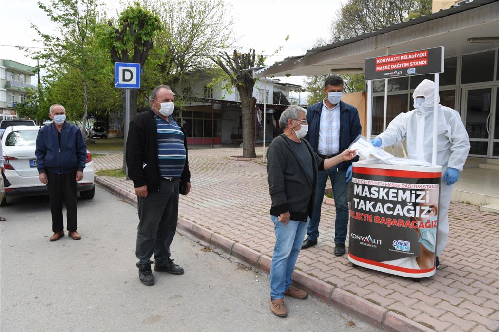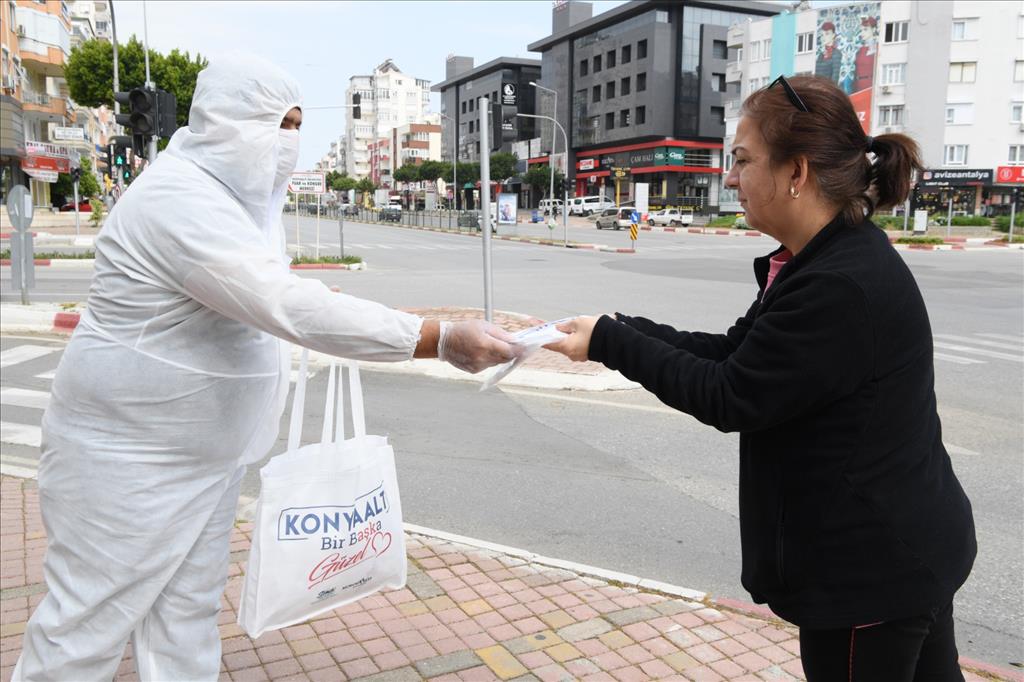 Konyaaltı’nın nüfusunun 190 bin olduğunu hatırlatan Başkan Semih Esen, herkese maske ulaşması için farklı bir uygulama gerçekleştirdiklerini vurguladı. Maskeye acil ihtiyaç duyanların sosyal medya hesaplarından kendilerine ulaştığını kaydeden Esen, “Maske dağıtım araçlarımız ile acil maske isteyenlere ulaştık. Araçlarımız ana arterlerde ring halinde gezerek sokaktaki vatandaşlara maske dağıttı. Büyük alışveriş merkezleri ve muhtarlıkların önünde, stantlar kurarak sokağa çıkmak zorunda kalanlara maske ulaştırdık. Pazar yerlerine maskesiz girişe izin vermediğimiz için pazar yerlerinin girişine maske stantları kurduk. Sonraki aşamada da personelimiz 39 mahallemize girerek bütün evlere maske ulaştırdı. Bugüne kadar 1 milyona yaklaşık maskeyi vatandaşıma ulaştırmayı başladık. Maskenin yanı sıra100 bin çifteldiveni vatandaşlarımız ile paylaştık” dedi.