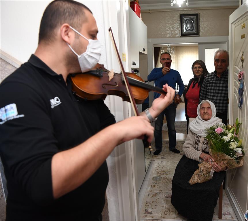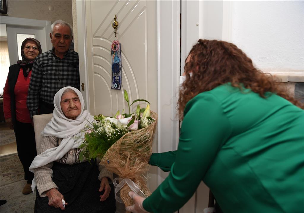 Konyaaltı Belediyesi, 10 Mayıs Anneler Günü’nde ilçenin yaşça en büyük annesini unutmadı. Belediye, Molla Yusuf Mahallesi’nde oğlu Osman Akşit ve gelini Rahime Akşit ile yaşayan 104 yaşındaki Mavize Akşit’in Anneler Günü’nü evinde kutladı. Belediye görevlileri keman eşliğinde Mavize Akşit’in zilini çaldı. Karşısında elinde çiçek ve kemanla birlikte belediye çalışanlarını gören Mavize Akşit ve ailesi büyük şaşkınlık yaşadı. Belediye görevlileri, Konyaaltı Belediye Başkanı Semih Esen’in selamını ilettiği Akşit’e çiçek vererek Anneler Günü’nü kutladı. 5 çocuk ve 90 torun sahibi 104 yaşındaki Mavize Akşit, duygulu anlar yaşadı. Mavize anneye keman eşliğinde ‘Benim Annem Canım Annem’ parçası çalındı.