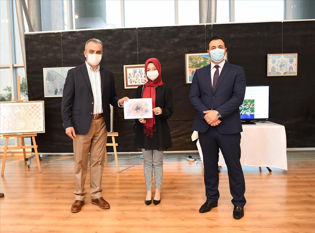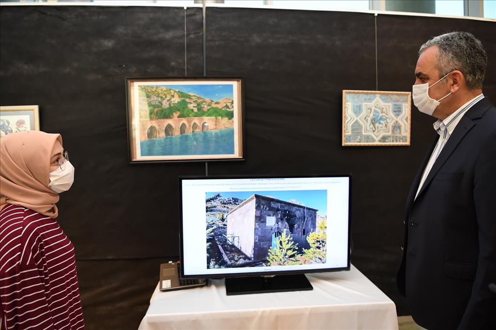Başkan Semih Esen ve Rektör Prof. Dr. Ekrem Kalan, eser sahipleri ile birlikte serginin açılış kurdelesini kesti. Sergiyi gezen Esen, eser sahibi öğrenci ve öğretim görevlilerinden çalışmaları hakkında bilgi aldı. Başkan Esen, eser sahiplerini çalışmalarından dolayı tebrik etti. Semih Esen ve Rektör Prof. Dr. Kalan, eser sahiplerine katılım belgelerini verdi.