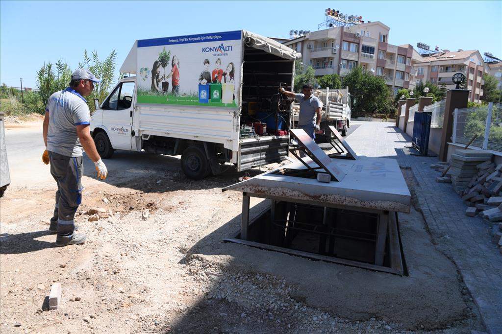 Konyaaltı Belediyesi Temizlik İşleri Müdürlüğü ekipleri, Konyaaltı’nda yaz aylarıyla artan nüfus oranına rağmen temizlik çalışmalarını titizlikle sürdürüyor. Ekipler bir yandan ilçe sınırlarında 7 gün 24 saat usulü temizlik çalışması sürdürürken, bir yandan da çöp konteynerlerini yer altına alma işlemini gerçekleştiriyor. Konyaaltı Belediyesi ekipleri ilçe sınırlarında 2’li, 3’lü ve 4’lü sistemler olmak üzere 140 noktada 672 çöp konteynerini yer altına aldı. Ekipler son olarak, Pınarbaşı Mahallesi 734 sokak üzerindeki çöp konteynerlerini yeraltına aldı.