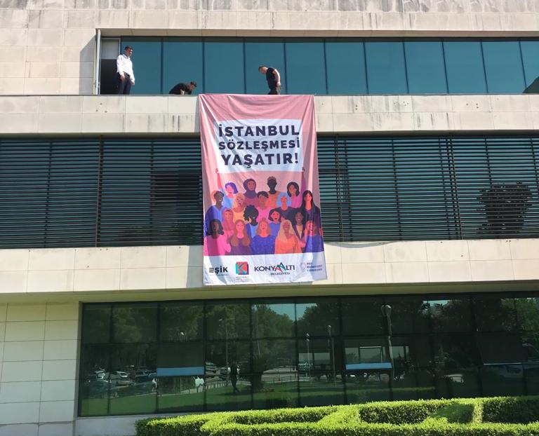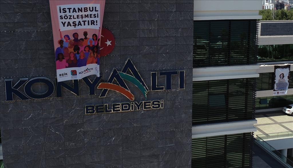 Konyaaltı Belediyesi, tartışmaların odağında yer alan İstanbul Sözleşmesi’ne yönelik tavrını belediye binasına asılan afişlerle açıkladı. Belediye binasının Konyaaltı Sahili tarafına ve ön tarafa, İstanbul Sözleşmesi’ne destekleyen iki dev afiş asıldı. Kadın imgelerinin kullanıldığı afişlerde, ‘İstanbul Sözleşmesi Yaşatır’ yazısı ile sözleşmenin kadınlar açısından değerine dikkat çekildi. Konyaaltı Belediye Başkanı Semih Esen, Kadınlara Yönelik Şiddet ve Aile İçi Şiddetin Önlenmesi ve Bunlarla Mücadeleye İlişkin Avrupa Konseyi Sözleşmesi ya da bilinen adıyla İstanbul Sözleşmesi, kadına yönelik şiddet ve aile içi şiddeti önleme ve bununla mücadelede temel standartları ve devletlerin bu konudaki yükümlülüklerini belirleyen uluslararası insan hakları sözleşmesi olduğunu hatırlattı. Sözleşmenin iptalinin kadınların kazanılmış haklarının geri götürmeye yönelik bir girişim olduğunu belirten Esen, kadına yönelik şiddetin arttığı bugünlerde sözleşmenin iptalinin gündeme gelmesinin manidar olduğunu söyledi.