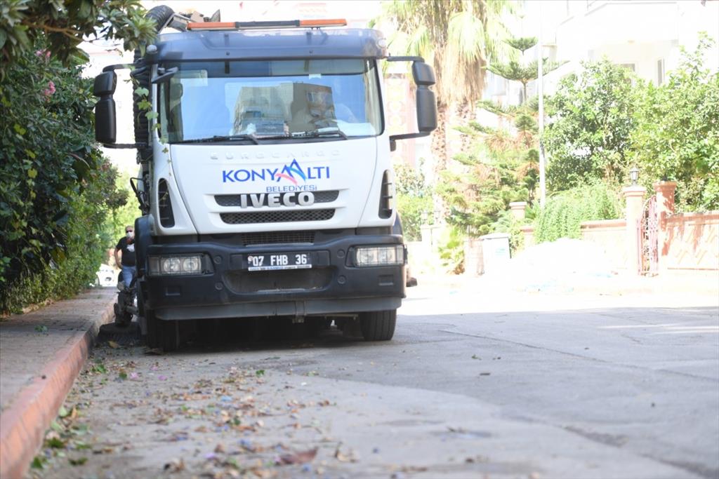 Konyaaltı Belediyesi Temizlik İşleri Müdürlüğü ekipleri, her gün çok sayıda yerli ve yabancı turistin geldiği Konyaaltı sokaklarında hummalı bir temizlik çalışması gerçekleştiriyor. Ekipler, bölge bölge ayrılarak, belirlenen noktaları baştan sona temizliyor. İlk olarak cadde ve sokaklardaki yabani otlar temizleniyor. Daha sonra temizlik aracı yerleri süpürüyor. Son olarak ise yıkama aracı temizlenen cadde ve sokakları yıkıyor. Temizlenen cadde ve sokaklar çevre sakinleri tarafından büyük beğeni topluyor.