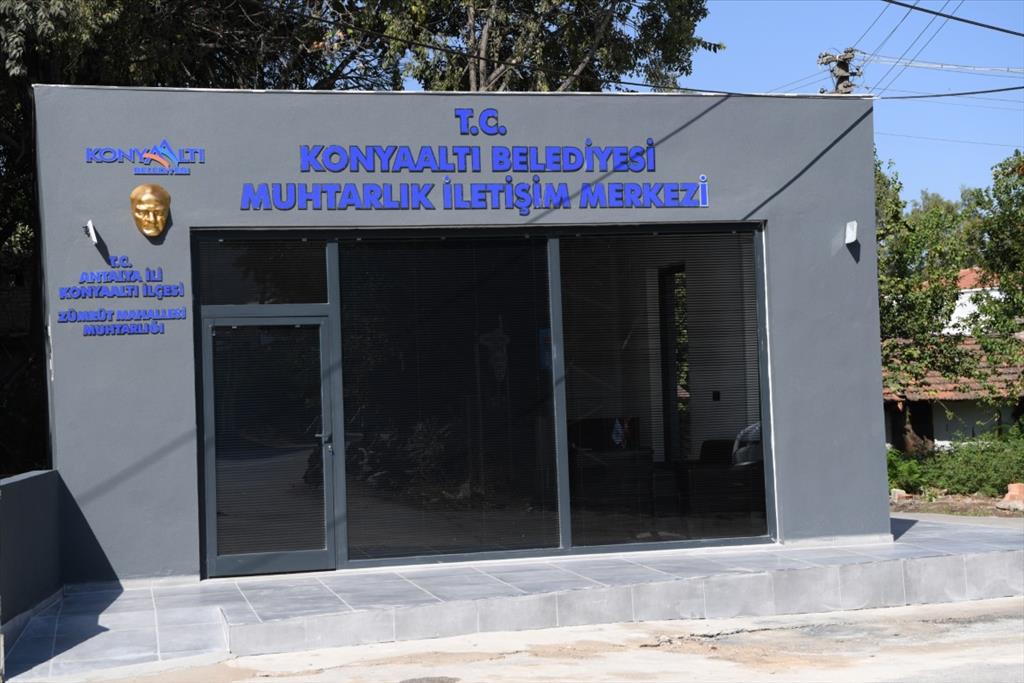 ‘Muhtarlar bizim çalışma arkadaşımız’ diyen Konyaaltı Belediye Başkanı Semih Esen, muhtarevi ihtiyacı olan mahallelerin bu isteklerini yerine getiriyor. Bu kapsamda Gürsu Mahallesi 338 sokak ile Gazi Mustafa Kemal Bulvarı kesişimine yapımına başlanan Gürsu Mahallesi Muhtarevi kısa zaman içinde bitti. 13 metrekare muhtar odası, dinlenme alanı, mutfak ve tuvalet ile 50 metrekare büyüklüğü sahip muhtarevi, modern yapısı ile dikkat çekiyor. Konyaaltı Belediyesi bir diğer muhtarevini ise Zümrüt Mahallesi'ne kazandırdı. Mutfak, dinlenme alanı ve muhtar odası ile birlikte 40 metrekare alana sahip Zümrüt Mahallesi Muhtarevi de tamamlandı. Zümrüt Mahallesi'ne yapılan muhtarevi ile birlikte Zümrüt Cami’nde vatandaşların kullanabilmesi için yeni tuvalet yapıldı.