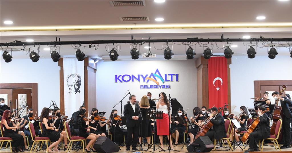 Daha sonra ise covid 19 tedbirleri kapsamında Konyaaltı Belediyesi Feslikan Salonu’ndan Konyaaltı Belediyesi Türk Halk Oyunları antrenörü Mehmet Bağcı, Gazi Mustafa Kemal Atatürk’ün çok sevdiği ‘Zeybek’ oyununu sergiledi. Konyaaltı Belediyesi Oda Orkestrası ise Feslikan Salonu’ndan alanı dolduran vatandaşlara dev ekran üzerinde muhteşem bir konser gerçekleştirdi. Oda Orkestrası’nın Cumhuriyet Bayramı’na özel hazırladığı repertuvar ile izleyen büyük bir coşku yaşadı. Oda Orkestrası’nı izleyenler konser alanından eşlik ederek, Cumhuriyet’in kuruluşun 97’nci yıl dönümünü kutladı.