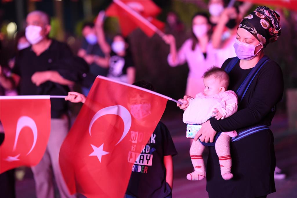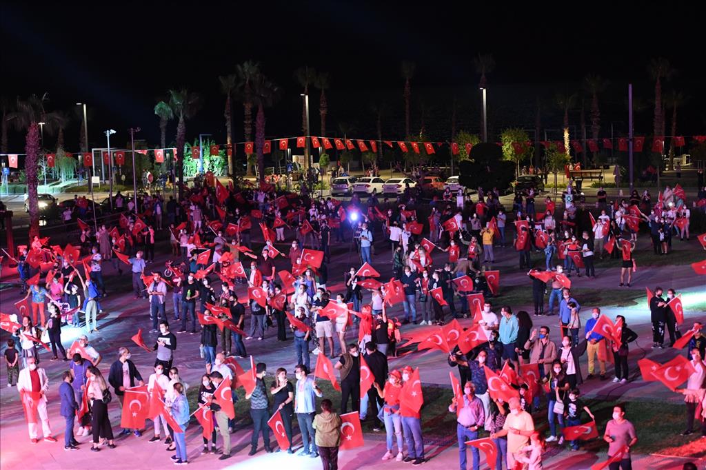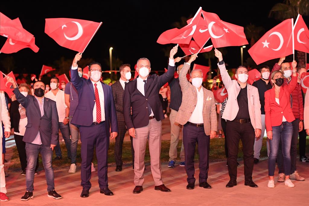 Konyaaltı Belediyesi, Cumhuriyet'in 97’nci kuruluş yıl dönümünü özel bir etkinlikle kutladı. Konyaaltı Belediyesi önünde gerçekleştirilen kutlama töreni covid 19 tedbirleri kapsamında gerçekleştirildi. Alana girişlerde maska dağıtılarak, vatandaşların ateş ölçümleri yapıldı. ‘O’nun sesi bir asırdır kulağımızda’ isimli Cumhuriyet kutlamasına, Konyaaltı Belediye Başkanı Semih Esen, Cumhuriyet Halk Partisi (CHP) eski Antalya İl Başkanı Ahmet Kumbul, Muratpaşa Belediyesi Başkan Yardımcısı Hüseyin Sarı, meclis üyeleri, başkan yardımcıları ve vatandaşlar katıldı. Saatler 19.23’ü gösterdiğinde saygı duruşunun ardından okunan İstiklal Marşı’yla Cumhuriyet kutlaması başladı. Yurttaşlar ellerinde Türk Bayrakları ile marşlar ve şarkılarla Cumhuriyet Bayramı coşkusunu yaşadı. Sahilde yürüyüş yapan ve oturan vatandaşlar da bu coşkuya ortak oldu.