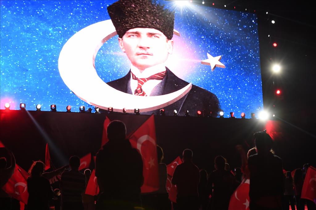 Konyaaltı Belediyesi önüne kurulan dev led ekranda, üç boyutlu görüntüler eşliğinde Gazi Mustafa Kemal Atatürk’ün çok özel görüntülerinden oluşan Cumhuriyet Bayramı'na özel film gösterimi yapıldı. Ekrandan vatandaşlara seslenen Konyaaltı Belediye Başkanı Semih Esen, bir milletin var oluş simgesi olarak gördüğümüz Cumhuriyet’in, kendileri için her şeyin üzerinde bir değere sahip olduğunu söyledi. Başkan Esen, “Cumhuriyet dendiğinde; cepheye mermi taşıyan analarımız gelir bizim aklımıza. Cumhuriyet bize gencecik yaşta, vatan için şehit düşen ve sonsuza kadar hep genç kalacak kahramanlarımızı hatırlatır. Cumhuriyet bağımsızlık aşkıdır. Umut ışığıdır. Bize emanet edilen Türkiye’dir. İlelebet var olacak Cumhuriyet’imize, ilelebet sahip çıkacağımızı, bir kez daha haykırıyoruz. Ata’mızın bir asırdır kulağımızda olan sesi ve yol göstericiliğe ile Cumhuriyet'in müjdesini Konyaaltı’ndan bir kez daha yineliyoruz. Dünümüz, bugünümüz, yarınımız olan Cumhuriyet Bayramımız kutlu olsun” dedi.