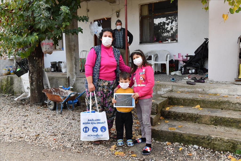 Konyaaltı Belediyesi, Covid-19 salgın önlemleri kapsamında hayata geçirilen uzaktan eğitim sistemi ile öğrenimini evden devam ettirmek durumunda olan, ancak bilgisayara sahip olamadığı için derslerini takip edemeyen öğrencilere tablet yardımı yapıyor. Bu kapsamda Konyaaltı Kaymakamlığı işbirliğiyle belirlenen ailelere tabletleri teslim edildi.