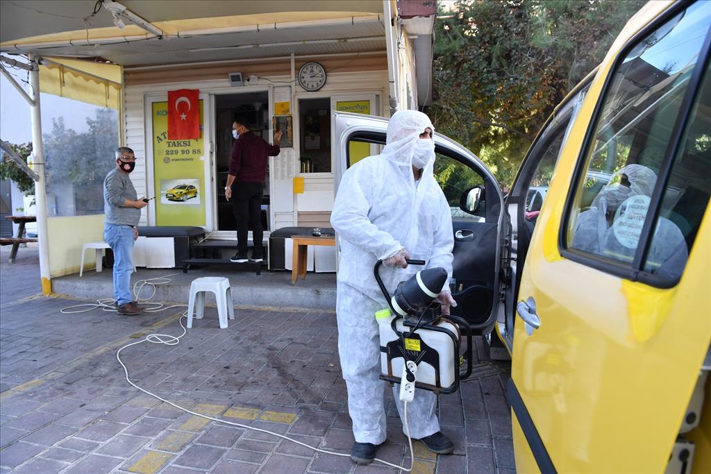 Konyaaltı Belediyesi, koranavirüsün Türkiye’de görüldüğü 11 Mart’tan bu yana virüsle mücadelesine ara vermeden devam ediyor. Bu kapsamda ilçe genelinde 21 taksi durağı ve bu duraklara bağlı çalışan 351 taksi, 60 cami ile okul ve bağlı kurumlar her hafta düzenli olarak dezenfekte ediliyor. Konyaaltı Belediye Başkanı Semih Esen, salgın dönemi bitene kadar bu çalışmaların belirli periyotlarla devam edeceğine dikkat çekti.