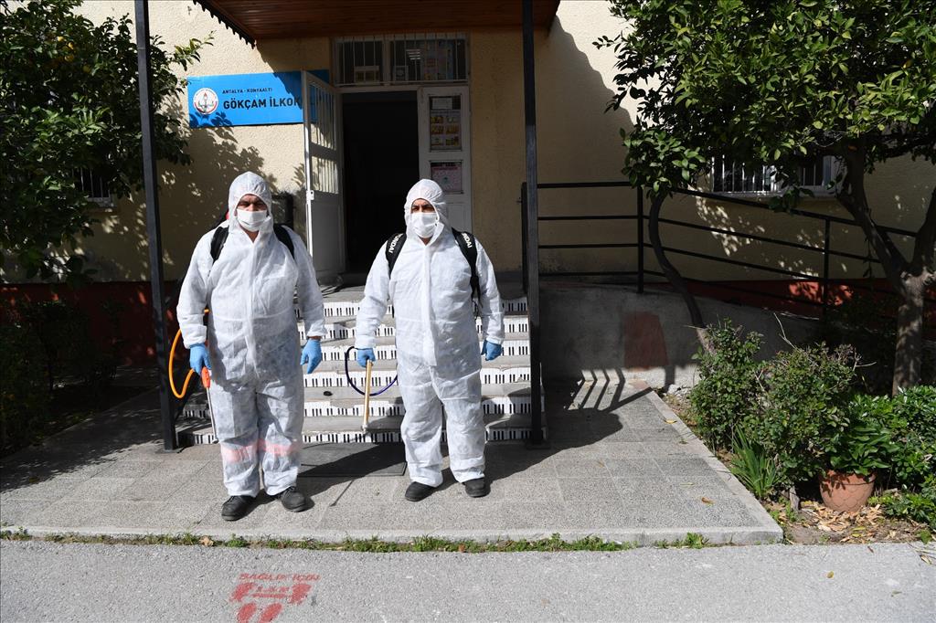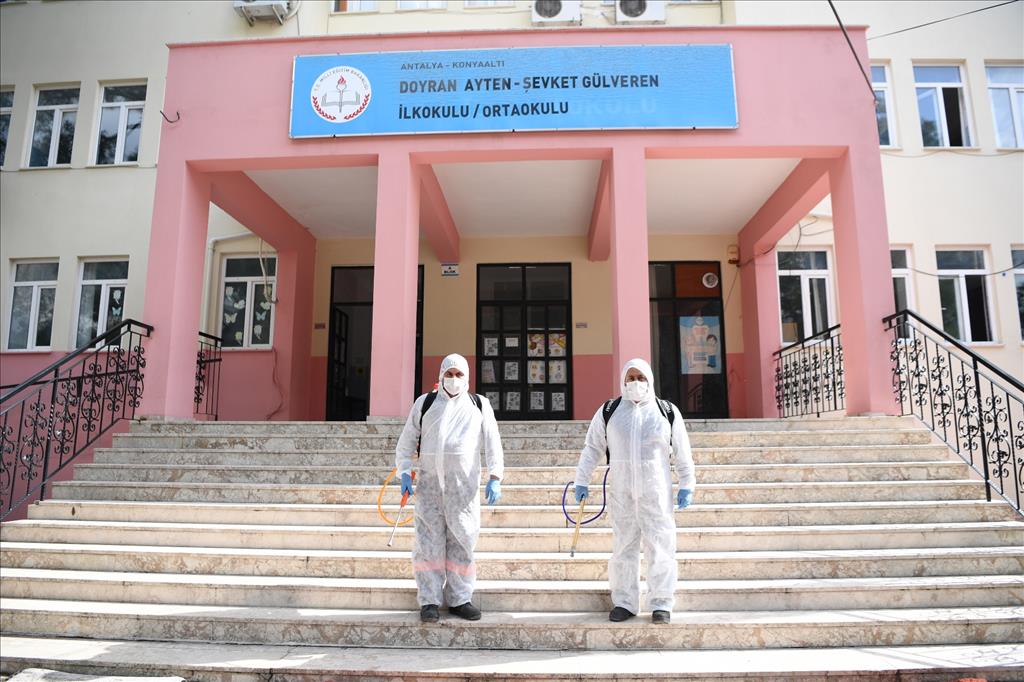 Konyaaltı Belediyesi, 2020-2021 eğitim-öğretim yılının ikinci dönemine yüz yüze başlayacak olan köy okullarında dezenfekte çalışması gerçekleştirerek, okulları eğitime hazır hale getirdi. Pandemi nedeniyle Türkiye genelinde uzun süredir uzaktan eğitime devam eden okullar, kademeli olarak yüz yüze eğitime geçiş yapacak. Konyaaltı Belediyesi, 15 Şubat Pazartesi günü itibariyle kapılarını öğrencilere açacak köy okullarında, eğitim faaliyetlerinin daha sağlıklı bir ortamda sürmesi için tüm hazırlıklarını gerçekleştirdi.
