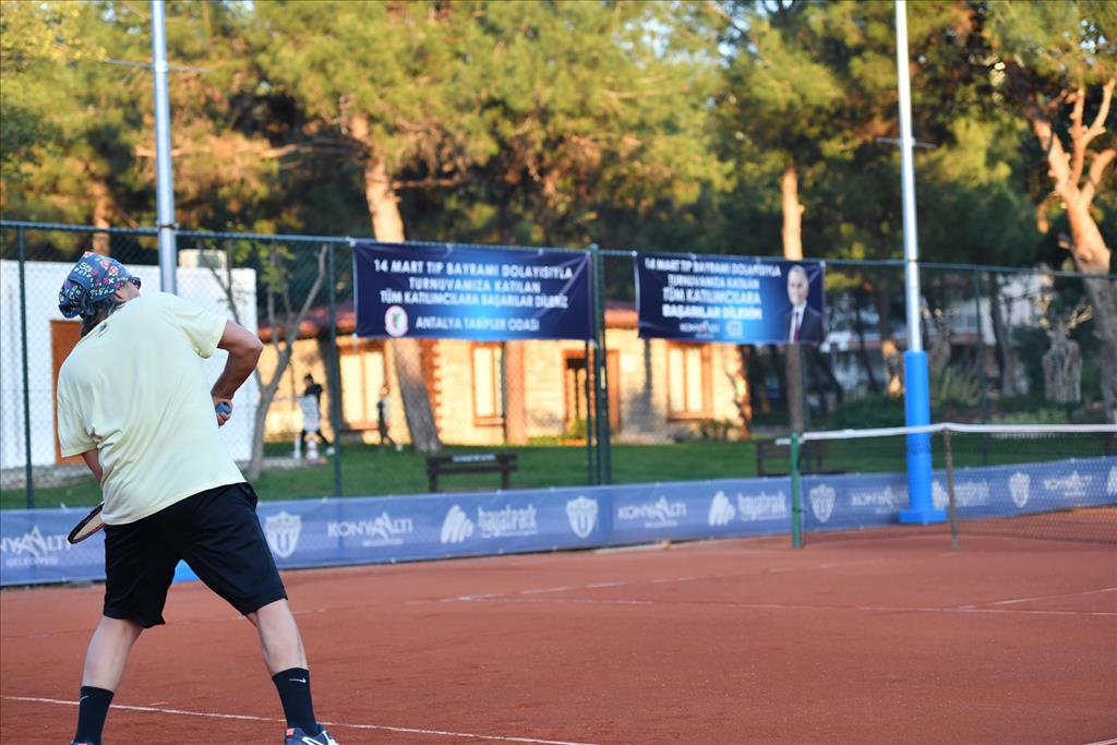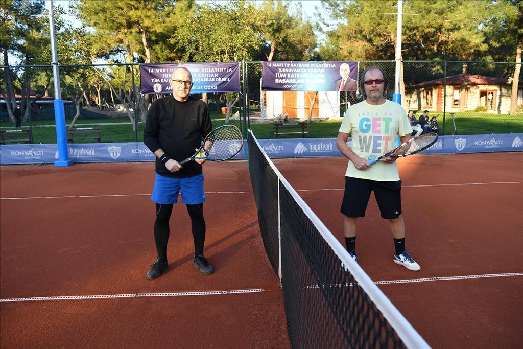 14 Mart Tıp Bayramı etkenlikleri kapsamında Konyaaltı Belediyesi ve Antalya Tabip Odası işbirliğiyle tenis turnuvası düzenlendi. Konyaaltı Belediyesi’nin Antalya’ya kazandırdığı HayatPark’ta oynanan turnuvaya 54 doktor başvuru yaptı. 14 gün boyunca tek erkekler, tek kadınlar ve tek erkekler usta kategorilerinde toplam 56 maç yapılacak. Turnuvanın final maçı ise 13 Mart Cumartesi günü oynanacak. Konyaaltı Belediye Başkanı Semih Esen de HayatPark’ta oynanan tenis maçını izleyerek doktorlara başarı diledi.