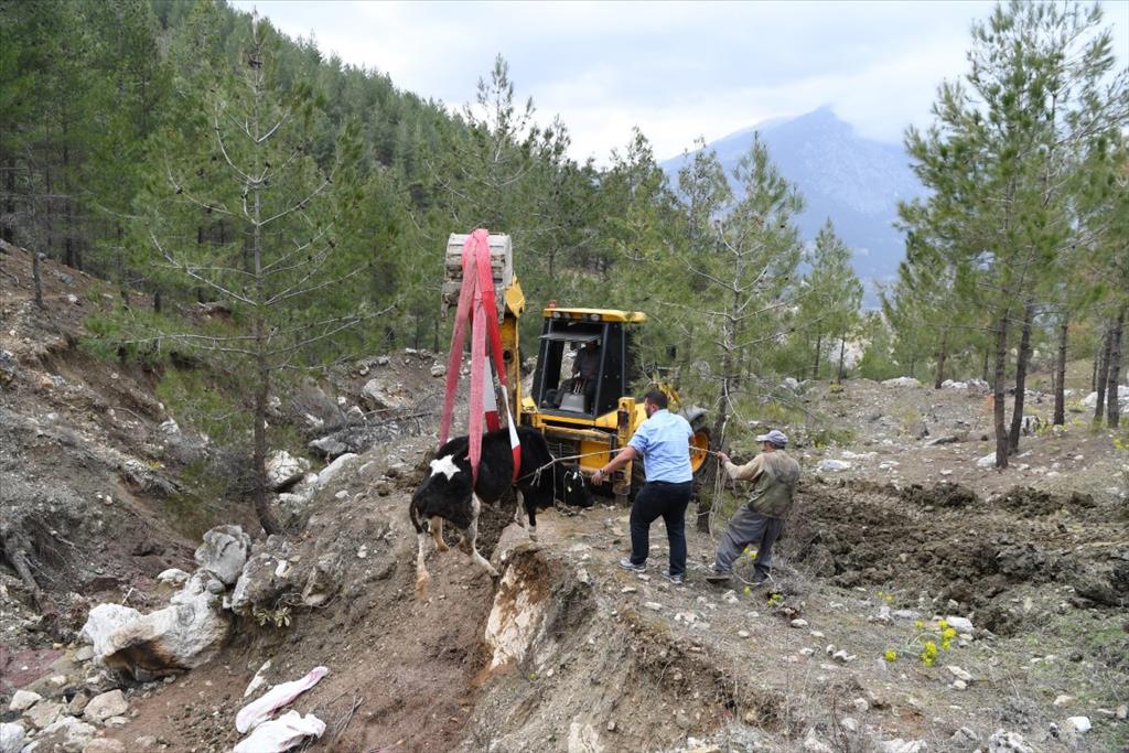 Şefik Kılıç, kendi çabasıyla ineğini kurtaramayınca Konyaaltı Belediye Başkanı Semih Esen’i aradı. Başkan Esen’in talimatıyla belediyeye ait bir kepçe, ineğin düştüğü bölgeye gitti. İneğe ulaşmak için önce kepçeyle yol açan operatör, 1 saatlik uğraşın ardından hayvanın bulunduğu bölgeye ulaştı. İneği halat yardımıyla düştüğü çukurdan yukarıya çıkaran kepçe operatörü, ineği kepçeyle Kılıç ailesinin evine bıraktı.