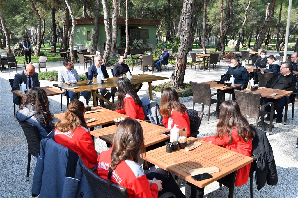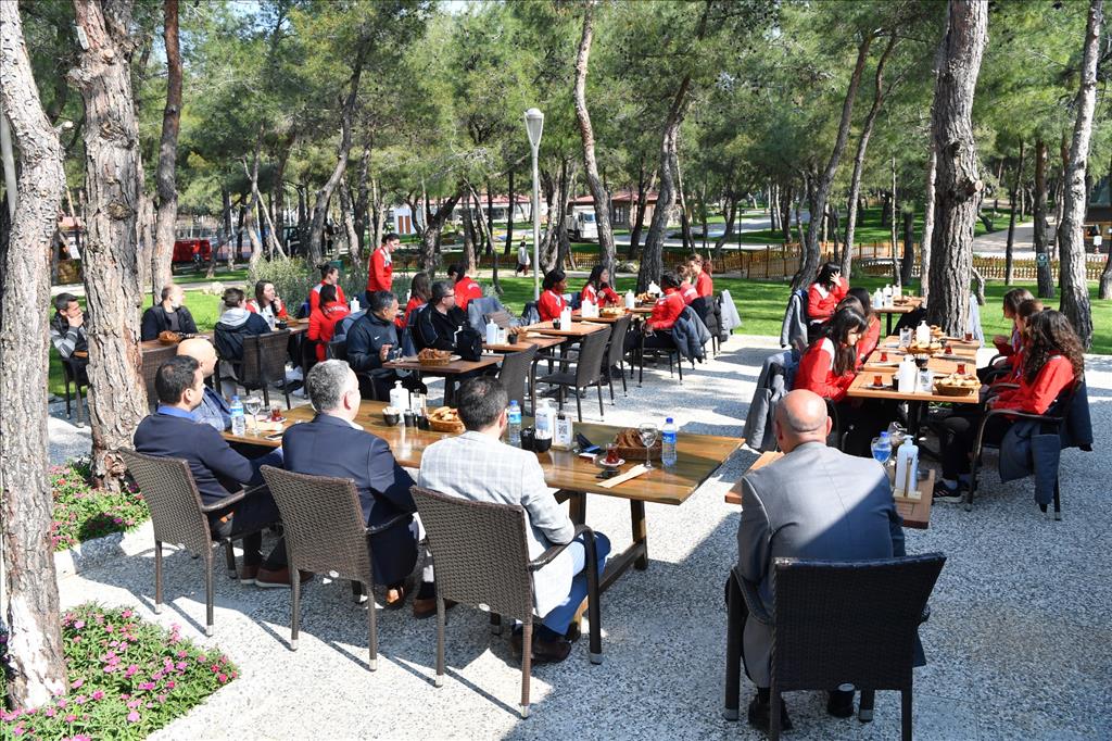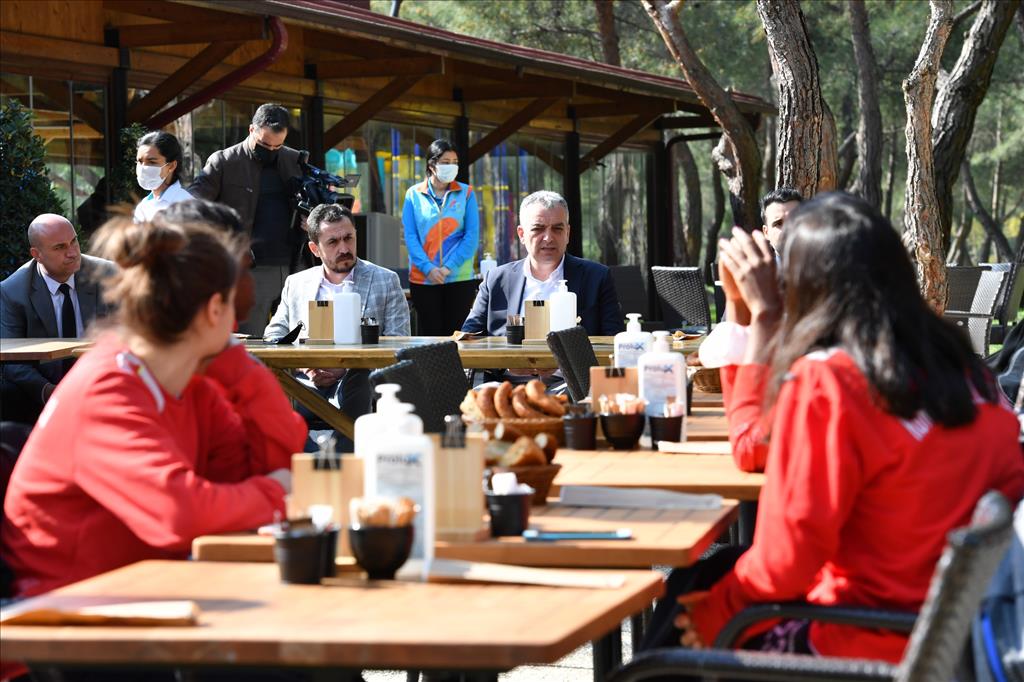 Konyaaltı Belediye Spor Kulübü Yönetim Kurulu Başkanı Ramazan Karabulut ve yönetim kurulu üyelerinin de bulunduğu toplantıda sporculara moral veren Başkan Esen, “Karşılaşmadan galibiyetle ayrılmak için öncelikle buna sizlerin inanması gerek” dedi. İnanmanın başarıdaki en önemli faktör olduğuna vurgu yapan Esen, “Takımın kurulduğu günden bu güne ben her zaman sizin yanınızda oldum. Sevinçlerinize de üzüntülerinize de ortak oldum. Yeni bir maç heyecanı öncesi sizlerle birlikte olmak istedim. Ben başaracağınıza inanıyorum. Lütfen siz de inanın” diye konuştu.