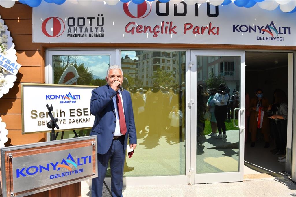Geçtiğimiz aylarda Konyaaltı Belediyesi ile ODTÜ Antalya Mezunları arasında yapılan ‘umut’ protokolü, EXPO Parkı içerisinde yapılan açılış ile hayat buldu. EXPO Parkı içerisinde hizmet binası olarak planlanan 406 metrekare alanı Konyaaltı Belediyesi Meclisinde alınan karar ile ODTÜ Antalya Mezunları Derneğine tahsis eden Konyaaltı Belediye Başkanı Semih Esen, ODTÜ Gençlik Parkı olarak düzenlenen bu alanın açılışını yaptı. Açılışa ODTÜ Antalya Mezunları Derneği Başkanı Yıldırım Şimşek, Konyaaltı Belediye Başkan Yardımcısı Tuğba Erke Bostan, Konyaaltı Belediye Meclis Üyeleri ve bazı mahalle muhtarları da katıldı.