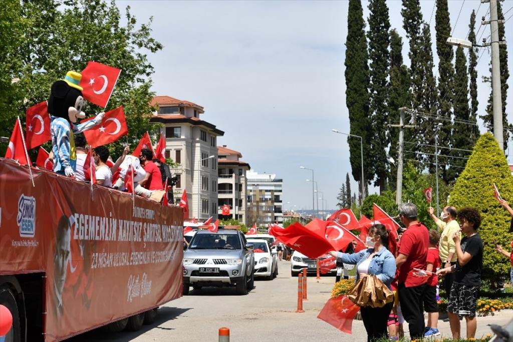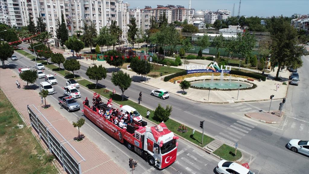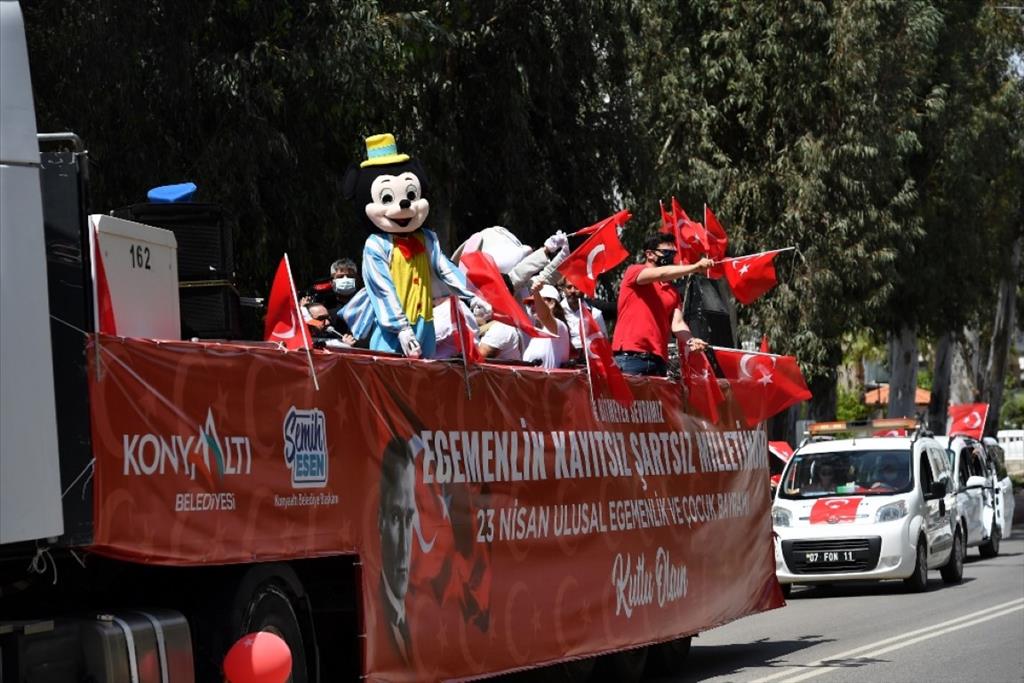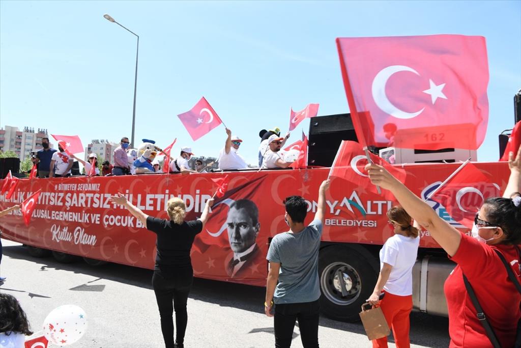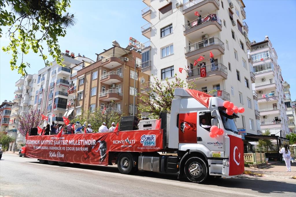 Konyaaltı Belediyesi, 23 Nisan Ulusal Egemenlik ve Çocuk Bayramı’nın 101’inci yıl coşkusunu evlere taşıdı. Salgın nedeniyle alınan tedbirler kapsamında sokağa çıkma kısıtlamasından dolayı çocuklar bu bayramı da evde geçirdi. Konyaaltı Belediyesi çocuklara 23 Nisan coşkusu yaşatmak için onlara giderek kutlama yaptı. Konyaaltı Belediyesi Oda Orkestrası ve 23 Nisan ‘Gezici Tır’ı Konyaaltı’nın mahalle ve sokaklarını turladı. Vatandaşlar balkonlardan bu coşkuya ortak oldu. ‘Gezici Tır’ yoğun ilgi ve sevgi gösterileriyle karşılandı. Vatandaşlar ellerinde bayraklarla, balkonlarından 23 Nisan Ulusal Egemenlik ve Çocuk Bayramı coşkusunu yaşadı.