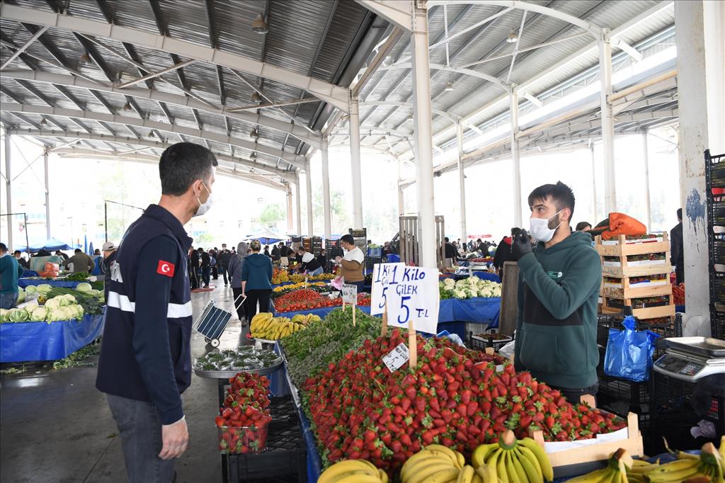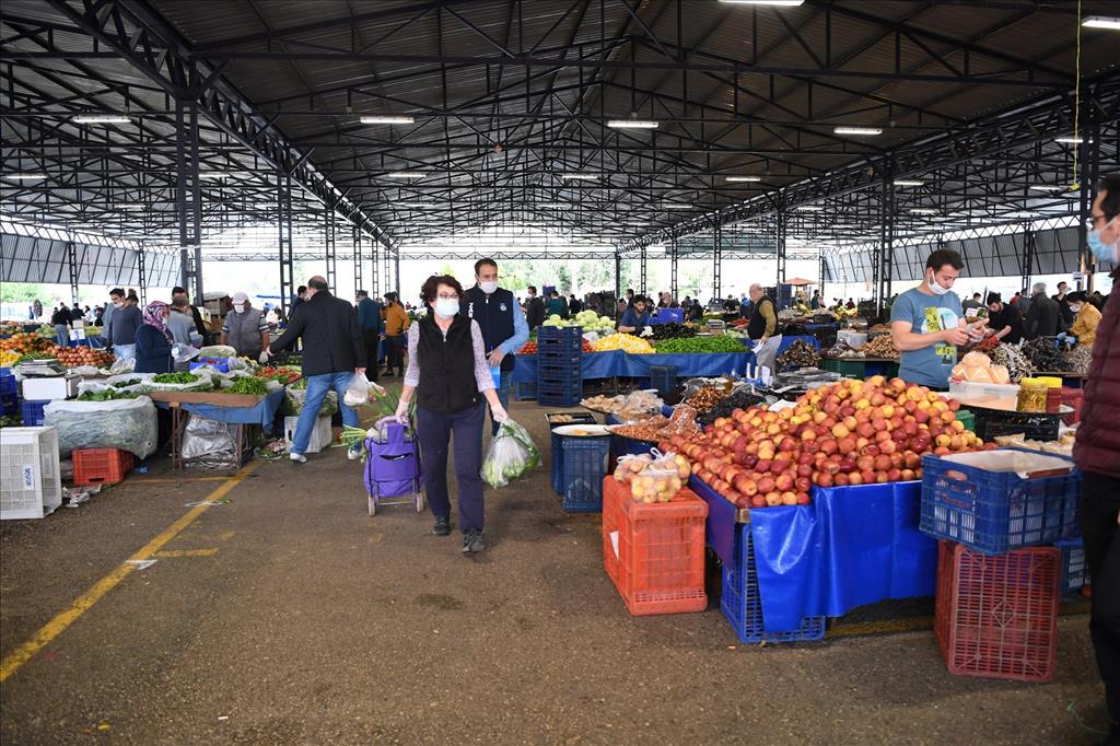 Konyaaltı Belediye Başkanı Semih Esen, 8 farklı pazar yerinde gerekli önlemleri alacaklarını duyurdu. Cuma gecesi semt pazarlarının dezenfekte edileceğini belirten Esen, bariyerlerle çevirecekleri alanlarda giriş ve çıkışların belirli noktalardan sağlanacağını söyledi. HES kodu sorgulaması ile vatandaşların pazar yerlerine alınacağını kaydeden Başkan Esen, “Zabıtalarımız, pazar yerlerinde önlemleri sıkı tutacak. Maskesiz girişlere izin verilmeyecek. Ama asıl sorumluluk yine vatandaşlarımıza düşüyor. Herkesi kendi önlemlerini almaya davet ediyorum” dedi.