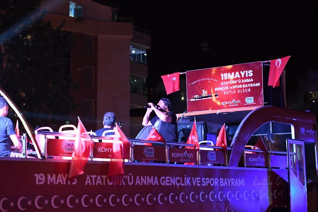 19 Mayıs Atatürk'ü Anma, Gençlik ve Spor Bayramı, tüm Türkiye genelinde olduğu gibi Antalya’da da COVİD-19 salgını gölgesinde kutlanacak. Salgınla mücadele kapsamında alınan tedbirler altında el ele, omuz omuza kutlanamayan 19 Mayıs Atatürk'ü Anma, Gençlik ve Spor Bayramı, Konyaaltı’nda geçtiğimiz yıl olduğu gibi bu yıl da evlerin balkonlarından gönül birliği içinde coşkuyla kutlanacak. Konyaaltı Belediyesi, 17-18 ve 19 Mayıs günleri 16.30 ile 22.30 saatleri arasında cadde cadde, sokak sokak mahalleleri gezecek olan tır ile birbirinden değerli sanatçıları Antalyalılar ile buluşturacak.