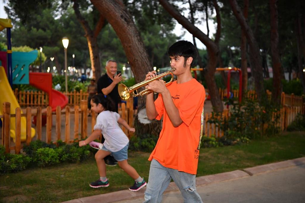 Konyaaltı Belediyesi Sanat Eğitim Merkezi (KONSEM) bünyesinde eğitim gören kursiyerlerden oluşan Konyaaltı Belediyesi Oda Orkestrası, HayatPark’ta flash mob etkinliği gerçekleştirdi. HayatPark yerleşkesinde bulunan kafelerde ve çim alanlarda oturan vatandaşların arasından enstrümanlarını çalarak ilerleyen müzisyenler, parkın ortasında bir araya geldi. Solistin söylediği ‘Memleketim’ şarkıya müzisyenler enstrümanlarıyla destek verdi. Şaşkınlıkla müzisyenleri izleyen vatandaşlar, ellerinde telefonlarla müzisyenlerin fotoğraf ve videolarını çekerken, bir yandan da şarkıya eşlik etti. Oda Orkestrası’nın flash mob etkinliği izleyenlerden büyük alkış aldı.