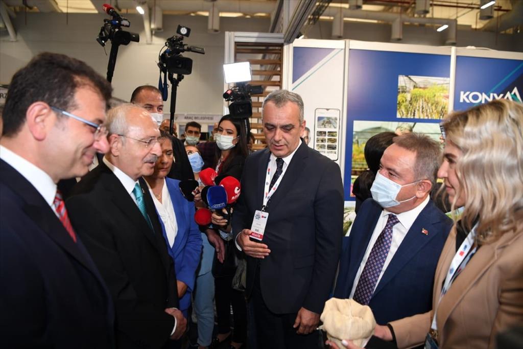 Konyaaltı Belediye Başkanı Semih Esen de katılımcı belediye başkanları arasında yer aldı. Konyaaltı Belediyesi standında ziyaretçilere ilçe tarımı ve bölgeye özgü ürünleri anlatan Başkan Esen, standı ziyaret eden CHP Lideri Kemal Kılıçdaroğlu, İstanbul Büyükşehir Belediye Başkanı Ekrem İmamoğlu ve Aydın Büyükşehir Belediye Başkanı Özlem Çerçioğlu’na Konyaaltı’nın önemli lezzeti olan Çandır Fasulyesi hakkında detaylı bilgi verdi.