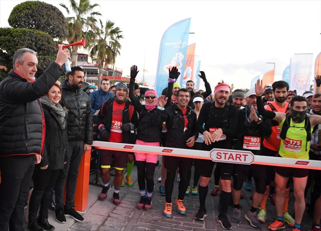 Bu yıl ilk kez düzenlenen Konyaaltı Belediyesi Antalya Ultra Trail Maratonu, Konyaaltı Belediyesi önünde başladı. Sabah saat 05.30’da belediye önünde buluşan sporcular, 06.00’da başlayacak koşu öncesi ısınma hareketleri yaptı. 54 kilometrelik parkur için saat 06.00’da başlangıç çizgisine geçen sporcular, Konyaaltı Belediye Başkan Semih Esen’in startıyla koşuya başladı. Bu parkurdaki 54 kilometrelik koşu, Antalya’nın kayak merkezi Saklıkent’te tamamlanacak. Deniz kenarında başlayan koşu yaklaşık 2865 metre yükseklikte tamamlanacak. Doğal güzergahlardan koşacak olan sporcular, parkurlarda saklı cennet olarak nitelendirilen Kapuz Kanyonu, Doyran Göleti, antik kentler Trebenna ve Neapolis’ten geçiş yapacak. Maratonun ikinci koşusu olan 28 kilometrelik parkur ise saat 08.00’de yine Başkan Semih Esen’in startıyla başladı. Bu parkurda sporcular, tırmanma kayalarıyla ünlü Geyikbayır’ında bitiş çizgisine ulaşacak.