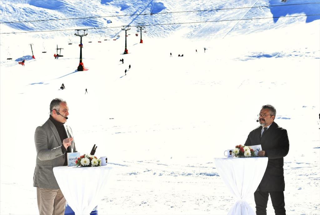 Konyaaltı Sahili’ndeki çekimlerin ardından program, ilçe sınırlarında yer alan kayak merkezi Saklıkent’te devam etti. Sahilden 45 dakika uzaklıkta karla kaplı Saklıkent’teki çekimler, Konyaaltı’nın farklı güzelliğini izleyicilere gösterdi. Başkan Esen, Saklıkent’in kayak için çok avantajlı bir merkez olduğunu belirterek, “Sahilden kısa bir yolculukla Saklıkent’e ulaştık. Türkiye’de, aynı anda denize girilen ve kayak yapılabilen başka bir örnek yok. Saklıkent’i çok önemsiyoruz. Burası Ekvator’a en yakın kayak merkezlerinden biridir. Gelen misafirlerimizin yollarda sıkıntı yaşamaması için ekiplerimiz 24 saat hazır bekliyor” dedi.