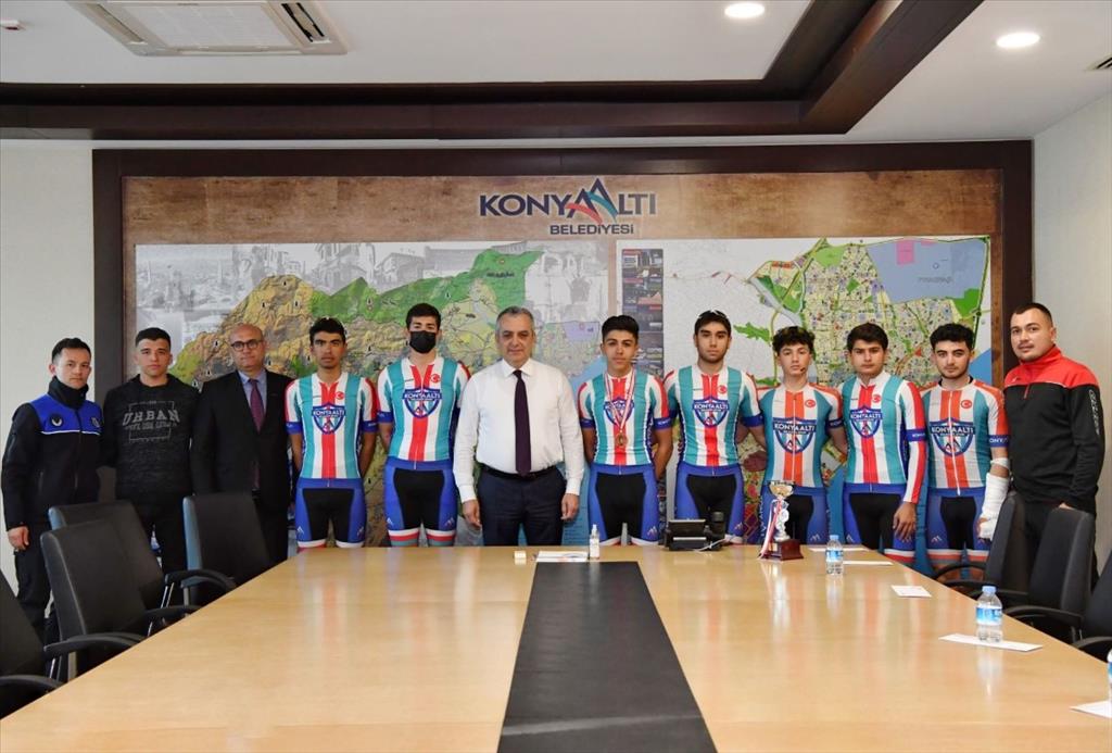 Konyaaltı Belediye Başkanı Semih Esen, yarışmada 2’nci olarak kürsüye çıkan Bisiklet Takımı ile bir araya gelerek sporcuları tek tek tebrik etti. Katıldıkları her organizasyondan başarıyla dönen sporcularıyla gurur duyduklarını belirten Esen, “Takımımız bir yarışmadan daha güzel bir sonuçla döndü ve göğsümüzü kabarttı. Bizleri en iyi şekilde temsil ediyorlar. Hepsine ayrı ayrı teşekkür ediyor, başarılarının devamını diliyorum” dedi. Takımla sohbet eden Başkan Esen, görüşmenin sonunda sporculara hediye verdi.