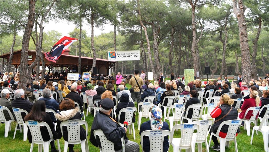 Konyaaltı Belediyesi’nin düzenlediği etkinlikler ile 8 Mart Dünya Emekçi Kadınlar Günü, ilçede renkli görüntülere sahne oldu. Konyaaltı Belediyesi ile Konyaaltı Halk Eğitim Merkezi iş birliği ile Dostluk Parkı’nda düzenlenen ‘Kadının elinin değdiği her yer sanat’ etkinliğine katılan kadınlar, alandaki tuvalleri diledikleri gibi boyayarak, keyifli vakit geçirdi. Konyaaltı Kent Konseyi Meclisi’nin HayatPark’da hazırladığı ‘serbest kürsü’ etkinliğinde de farklı mesleklerden kadınlar, geleceğe yönelik umutlarını haykırdı. Akşam saatlerinde ise Konyaaltı Belediyesi Tiyatro Akademisi’nin sahne aldığı ‘Kadına Dair’ isimli tiyatro oyunu tiyatroseverlerin akınına uğradı.