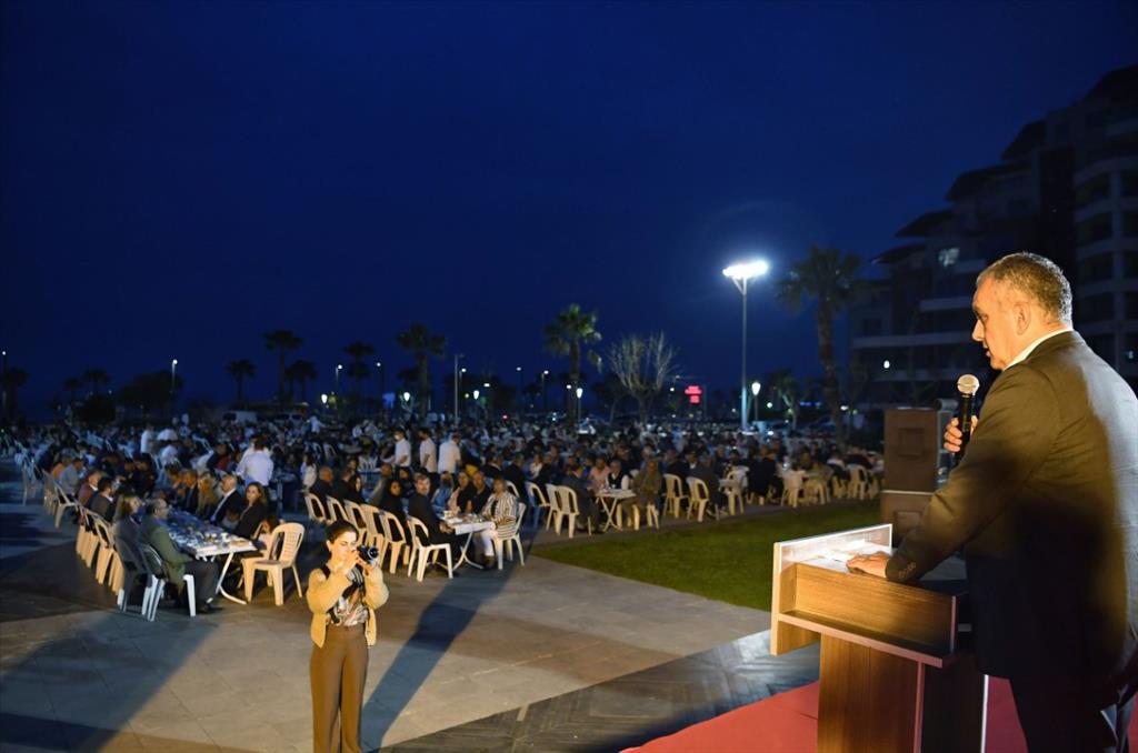 Konyaaltı Belediyesi Ramazan ayı dolayısı ile düzenlediği son iftarını belediye çalışanları ile gerçekleştirdi. İftara Konyaaltı Belediye Başkanı Semih Esen, Konyaaltı Kaymakamı Kamil Köten, meclis üyeleri ve Konyaaltı mahalle muhtarları katıldı. İftara aileleri ile birlikte katılan personel tam kadro yemekte yer aldı. Yemekte kısa bir konuşma yapan Başkan Esen, personeli ile bir arada olmanın mutluluğunu yaşadığını ifade etti. Pandemi nedeniyle hayatını kaybeden personellerini de unutmayan Esen, hayatını kaybeden çalışanlarının isimlerini tek tek dile getirerek rahmet diledi. Konyaaltı’nda hizmet ederken büyük bir fedakarlık ile çalışan personeline teşekkür eden Esen, Konyaaltı halkına hizmet etmenin bir onur olduğunu vurguladı. Başkan Esen’den sonra kürsüye çıkan Konyaaltı Kaymakamı Kamil Köten ise Konyaaltı’nı, Antalya’nın en güzel yeri olduğunu belirterek, kenti hizmetleri ile daha güzel kıldığı için Başkan Esen’e teşekkür etti.