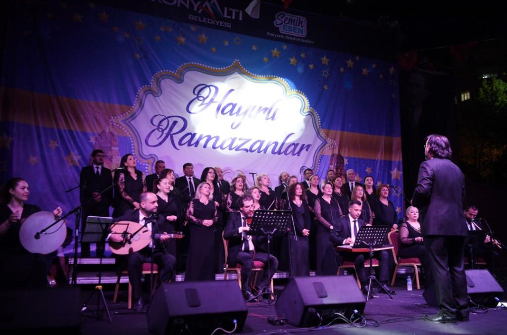 Konyaaltı Belediyesi, Ramazan ayında düzenlediği şenliklerin sonuncusunu da gerçekleştirerek, vatandaşlara keyifli bir akşam yaşattı. 23 Nisan Ulusal Egemenlik Parkı’nda düzenlenen konserde Konyaaltı Belediyesi Türk Sanat Müziği Korosu sahne aldı. Parkın içinde bulunan amfi tiyatro alanını dolduran müzikseverler, aileleri ile birlikte söylenen şarkılara eşlik ederek gecenin keyfini çıkardı.