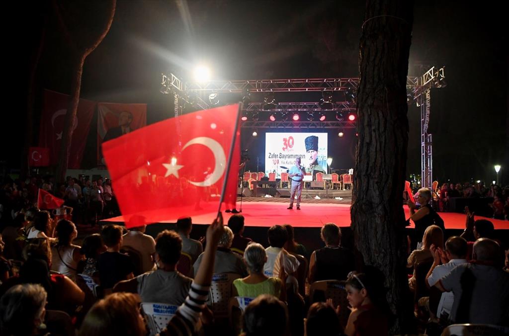 Türkiye Cumhuriyeti’nin 100. yılını daha büyük bir coşku ile kutlayacaklarını ifade eden Esen, yıl boyunca çeşitli etkinlikler ile hem Cumhuriyeti hem Atatürk’ü hem de şehitleri anacaklarını dile getirdi. Alanda bulunan çocuk ve gençlere seslenen Esen, “Cumhuriyetimizin 100. yılını önümüzdeki sene inşallah hep beraber kutlayacağız. Ama bu kutlamayı bir günde yapmayacağız. Bütün sene boyunca değişik etkinlikler ile kutlayacağız. Ama ilk önce kendimize şunu göstereceğiz, çocuklarımıza ve gençlerimize sesleniyorum; biz artık geçmişteki hataları yapmayacağız çocuklar, yapmayacağız gençler. Sizlere de daha iyi örnek olacağız ve Türkiye’yi hep birlikte çok daha müreffeh çok daha başarılı ve mutlu bir ülke haline getireceğiz” diye konuştu. Etkinlikte ilerleyen saatlerde Konyaaltı Belediyesi Oda Orkestrası ve Enes Demirci sahneye çıkarak, vatandaşlara keyifli bir akşam yaşattı.