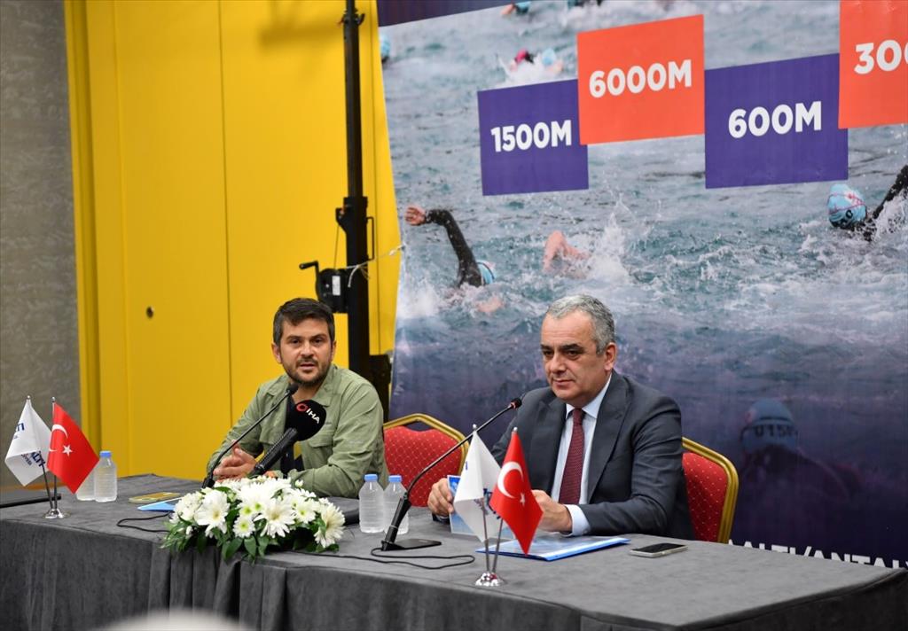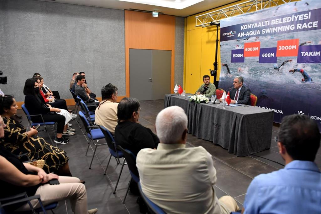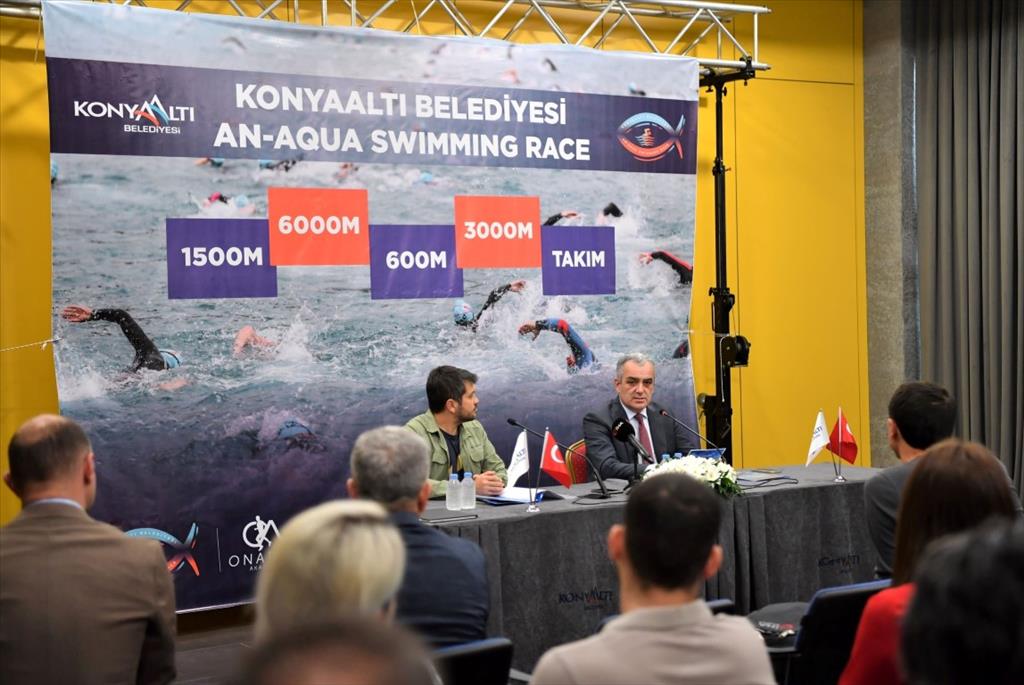 Konyaaltı Belediye Başkanı Semih Esen, Antalya’da ilk defa gerçekleştirilecek Konyaaltı Belediyesi Uluslararası An-Aqua Swimming Race yüzme yarışı hakkında düzenlenen basın toplantısında konuştu. Nazım Hikmet Fuar ve Kongre Merkezi’ndeki toplantıda, 22 ve 23 Ekim tarihlerinde gerçekleştirilecek yarışların detaylarını paylaşan Başkan Esen, organizasyonu 600 metre takım yarışı, 1500 metre yarışı, 3000 metre yarışı ve 6000 metre yarışı olmak üzere 4 ayrı kategoride düzenleyeceklerini kaydetti. Dünyada örnekleri olan bu yarışmayı Antalya’da ilk kez yapacaklarını aktaran Başkan Esen, “Hafta sonu gerçekleşecek yarışları bundan sonra her sene düzenleyerek gelenekselleştirmek istiyoruz’’ dedi.