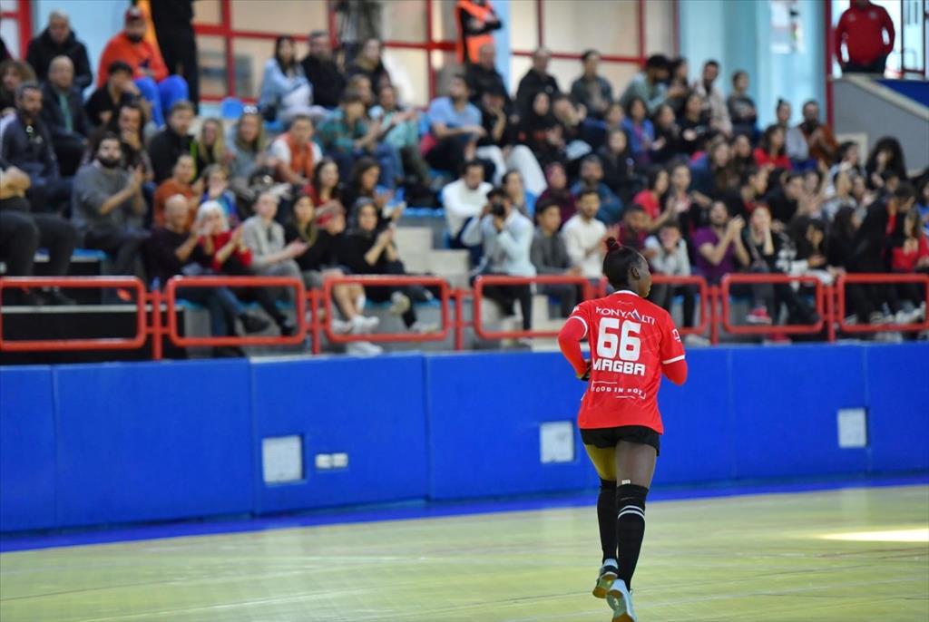 Karşılaşmanın ilk 10 dakikasında rakibine gol izni dahi vermeyen Konyaaltı, ilk yarıyı da 16-10 önde kapattı. İkinci yarıda da hız kesmeyen Mavi Kelebekler, Sanja Premoviç’in 8 gol ile yıldızlaştığı maçta rakibini 36-26 mağlup ederek zirve mücadelesini sürdürdü. Devre arası transfer döneminde takıma katılan Michaella Magba da taraftarının önünde ilk kez sahaya çıktı. Magba oyunda kaldığı süre içerisinde attığı 4 golle skora katkıda bulundu.