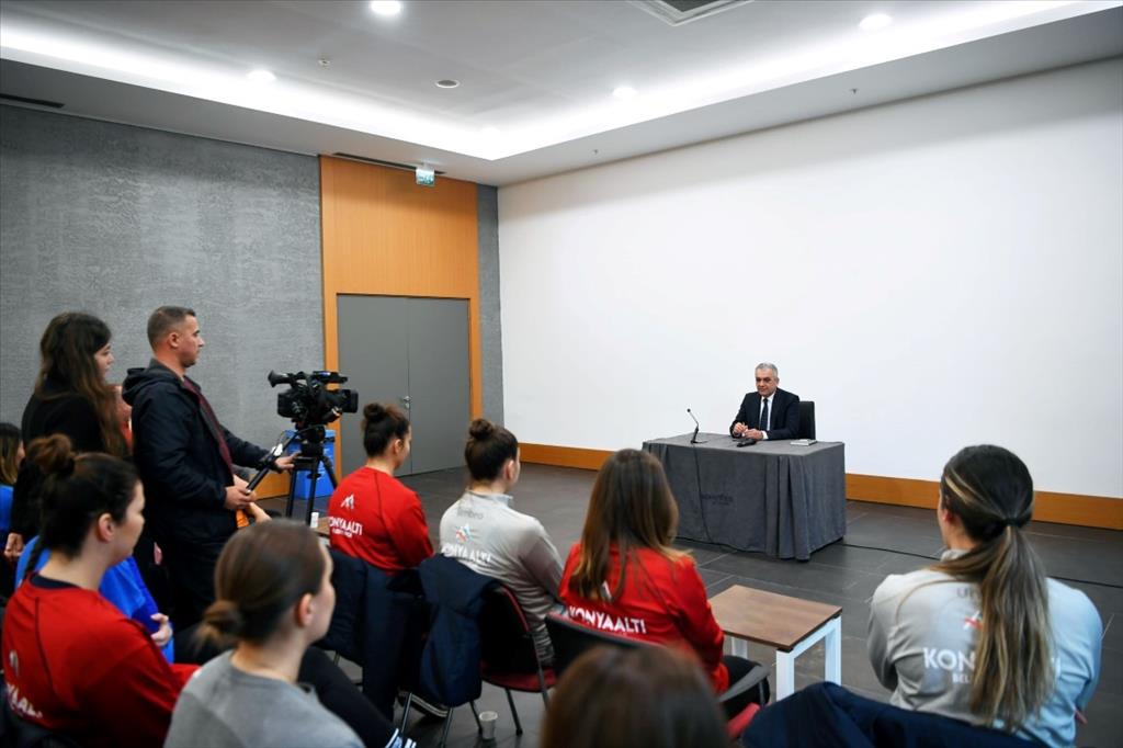 Özellikle kadınların toplumda öne daha fazla çıkmaları gerektiğini ifade eden Esen, kadınların başarılı ve mutlu olmaları kendileri için çok önemli olduğunu dile getirdi. Her yıl önlerine yeni hedefler koyarak yollarına devam ettiklerini söyleyen Başkan Esen, artık hedeflerinin Antalya’ya ve Türkiye’ye kupa getirmek olduğunu belirtti. Sporcularının tüm bunları başaracak potansiyele sahip olduğunu kaydeden Esen, “Bizi çok mutlu ettiniz ve gururlandırdınız. Büyük bir heyecanla, size çok streste yüklemek istemiyorum, içimde bir his kupanın geleceğini söylüyor bana. Bunu yaşarsak çok büyük bir mutluluk duyacağım. Hem bana hem kendinize yaşatmayı istediğinizi biliyorum. Bir hayalim var. Maalesef Türkiye’nin şartlarından dolayı gecikme yaşadık. Maçları ve idmanları yaptığımız sahanın, konaklama ve sosyal tesislerin bir arada olduğu ve belki de Türkiye’nin en önemli konaklama tesisinde sizleri bir araya getirmek istiyorum. Önümüzde ki dönemde yapmayı planlıyoruz” diye konuştu.