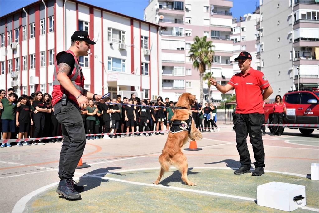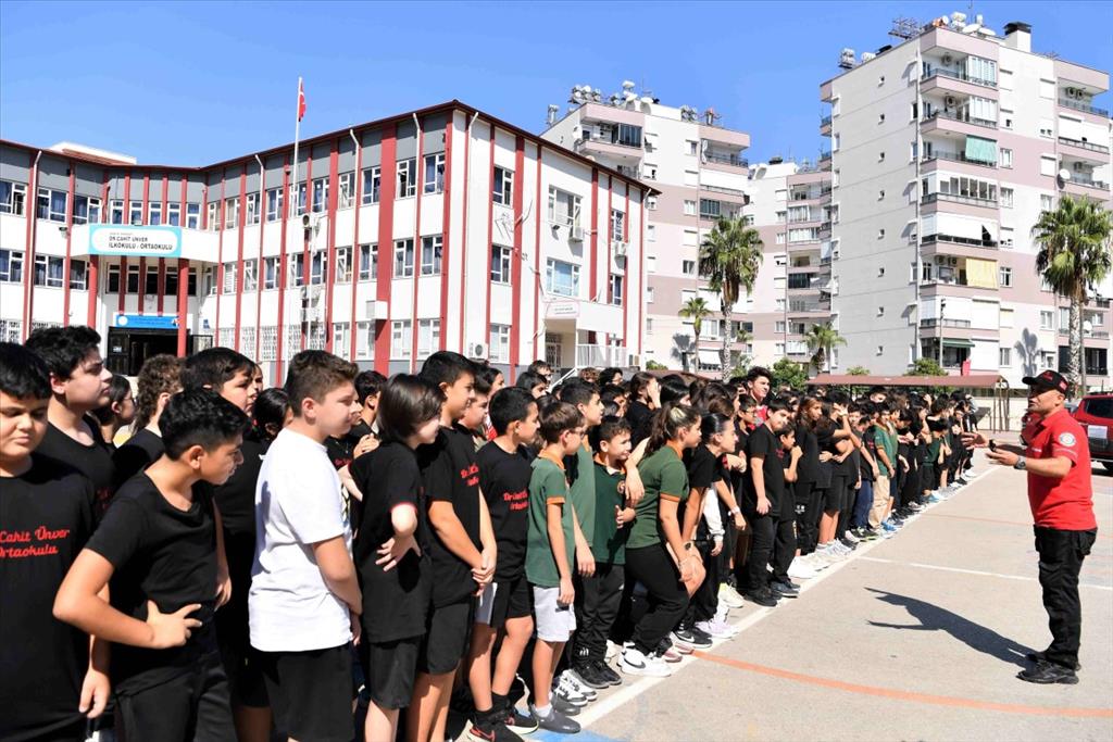 Tatbikatta Dr. Cahit Ünver İlkokulu-Ortaokulu’nda 7’nci sınıf öğrencilerine afet durumunda başlarına gelebilecek olaylardan nasıl korunabileceklerini anlattıklarını söyleyen Konyaaltı Belediyesi Sivil Savunma Uzmanı Sinan Toprak, “Eğitimin ardından Konyaaltı Belediyesi arama kurtarma köpeğimiz Zeyna ile beraber okul bahçesinde arama kurtarma köpeği neler yapar öğrencilerimize onu gösterdik. Bu tür eğitimlerin her türlü kurum ve kuruluş tarafından desteklenip çoğalmasını diliyoruz. Çocuklara eğitim vererek daha bilinçli toplum amaçlıyoruz. Hedefimiz afet bilinci” dedi. Irmak Yıldız da “Deprem tatbikatı yaptık. Deprem olduğunda korkmamamız lazım. Tatbikatta deprem olduğunda korkmadan yavaş bir şekilde toplanma alanına nasıl gideceğimiz gösterildi. Konyaaltı Belediye Başkanı Semih Esen’e teşekkür ederim” diye konuştu.
