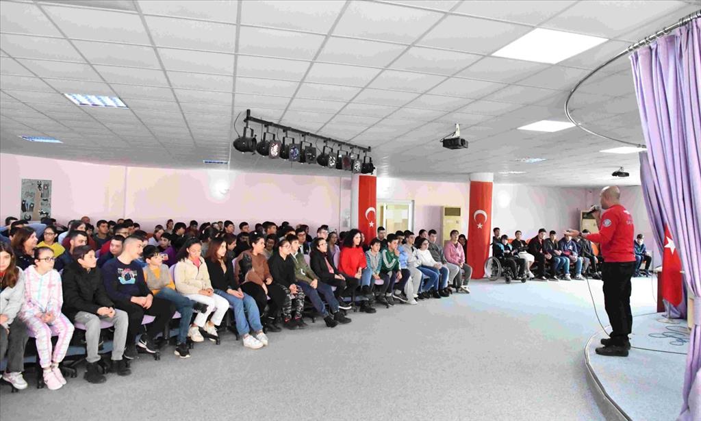 Konyaaltı Belediyesi Destek Hizmetleri Sivil Savunma Ekipleri, Deprem Haftası nedeniyle Dr. Günseli Dr. Bülent Akınsal Özel Eğitim Ortaokulu ve Özel Eğitim Meslek Okulu’nda özel öğrencilere acil durum eğitimi ve deprem tatbikatı gerçekleştirdi. Konyaaltı Belediyesi arama kurtarma köpeği Zeyna’nın da katıldığı tatbikatta özel öğrenciler hem eğlendi hem de öğrendi.