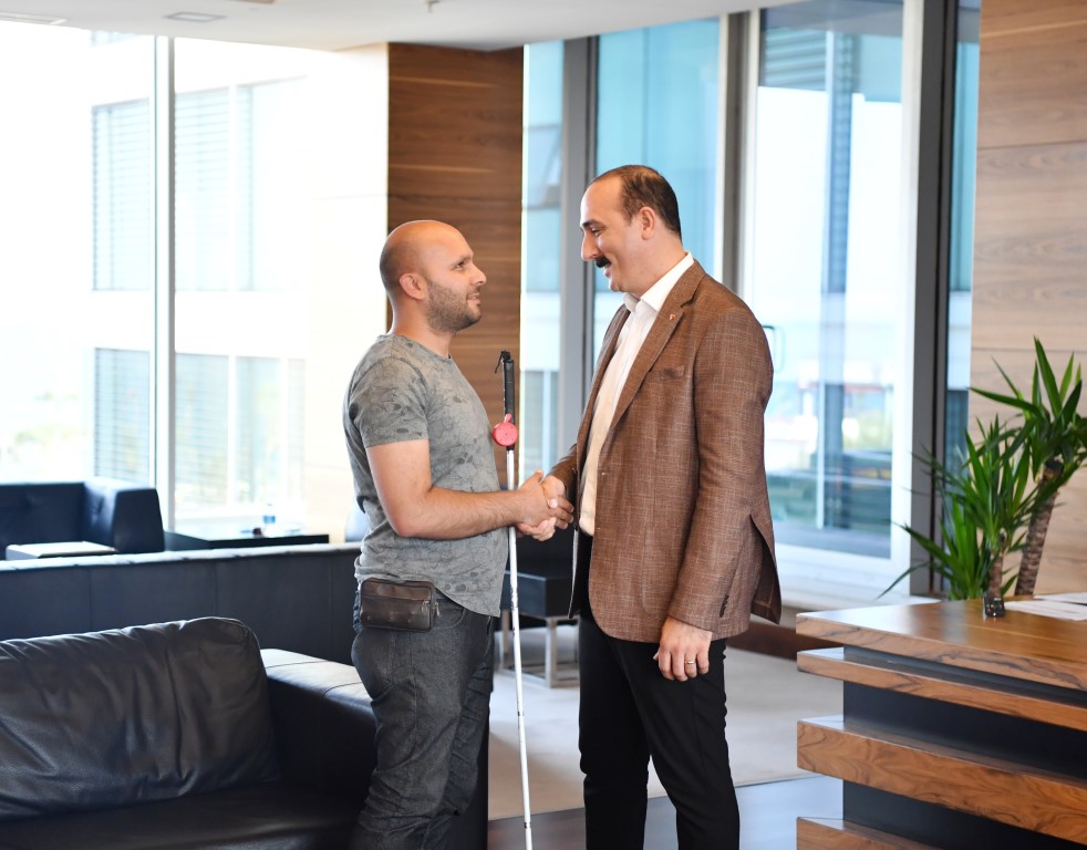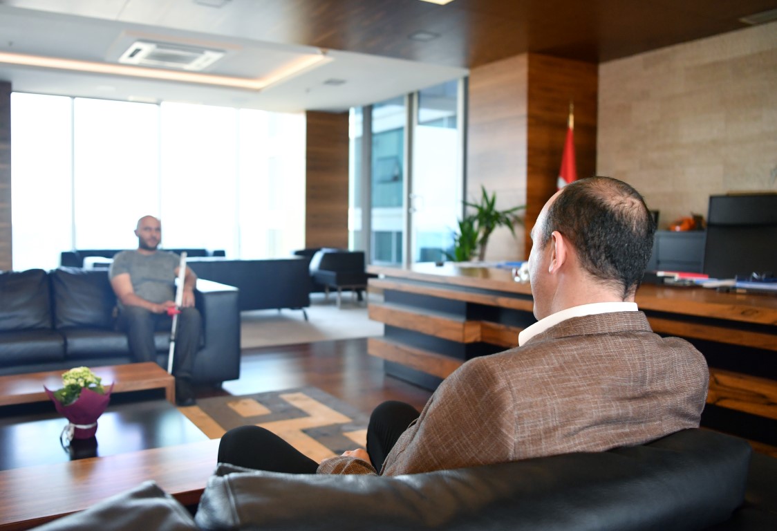 6 Şubat depreminin ardından Malatya’dan Antalya’ya gelen ve kente yerleşen görme engelli vatandaş Sinan Yolcu, Konyaaltı Belediye Başkanı Cem Kotan’ı ziyaret etti. Kotan’a engellilerin yaşadığı sıkıntılardan bahseden Yolcu, “Ben 32 yaşında Malatya doğumlu depremzede bir vatandaşım. Öncelikle hassasiyetiniz için size minnettarım Konyaaltı belediyesi bambaşka bir belediye gerçekten Antalya da bambaşka bir belediye. Konyaaltının bu konuda farkı var. Hassasiyetinizi hissedebiliyoruz. ” diye kaydetti.